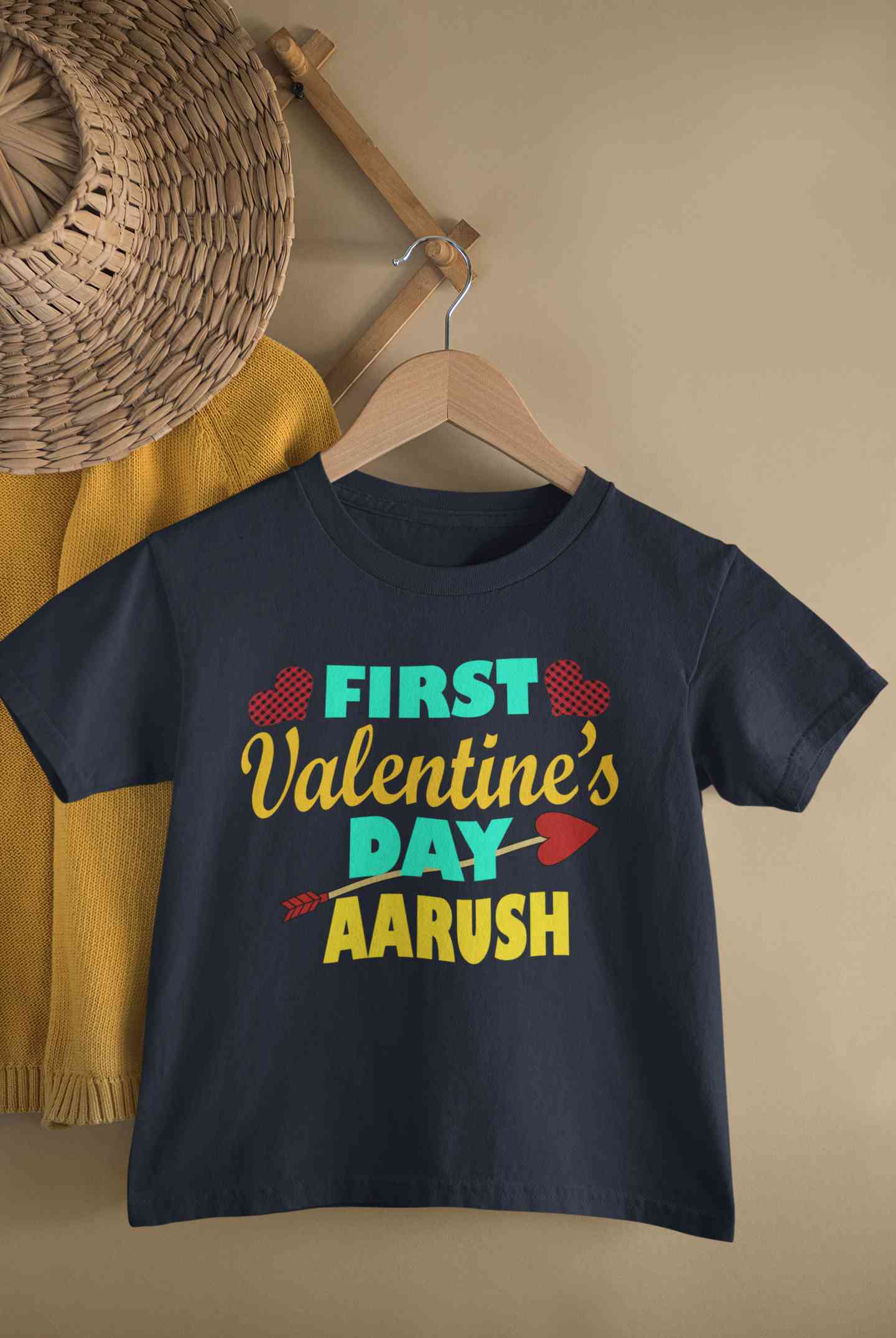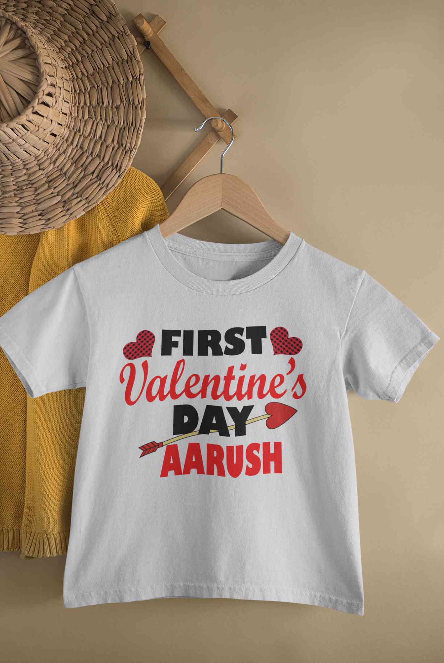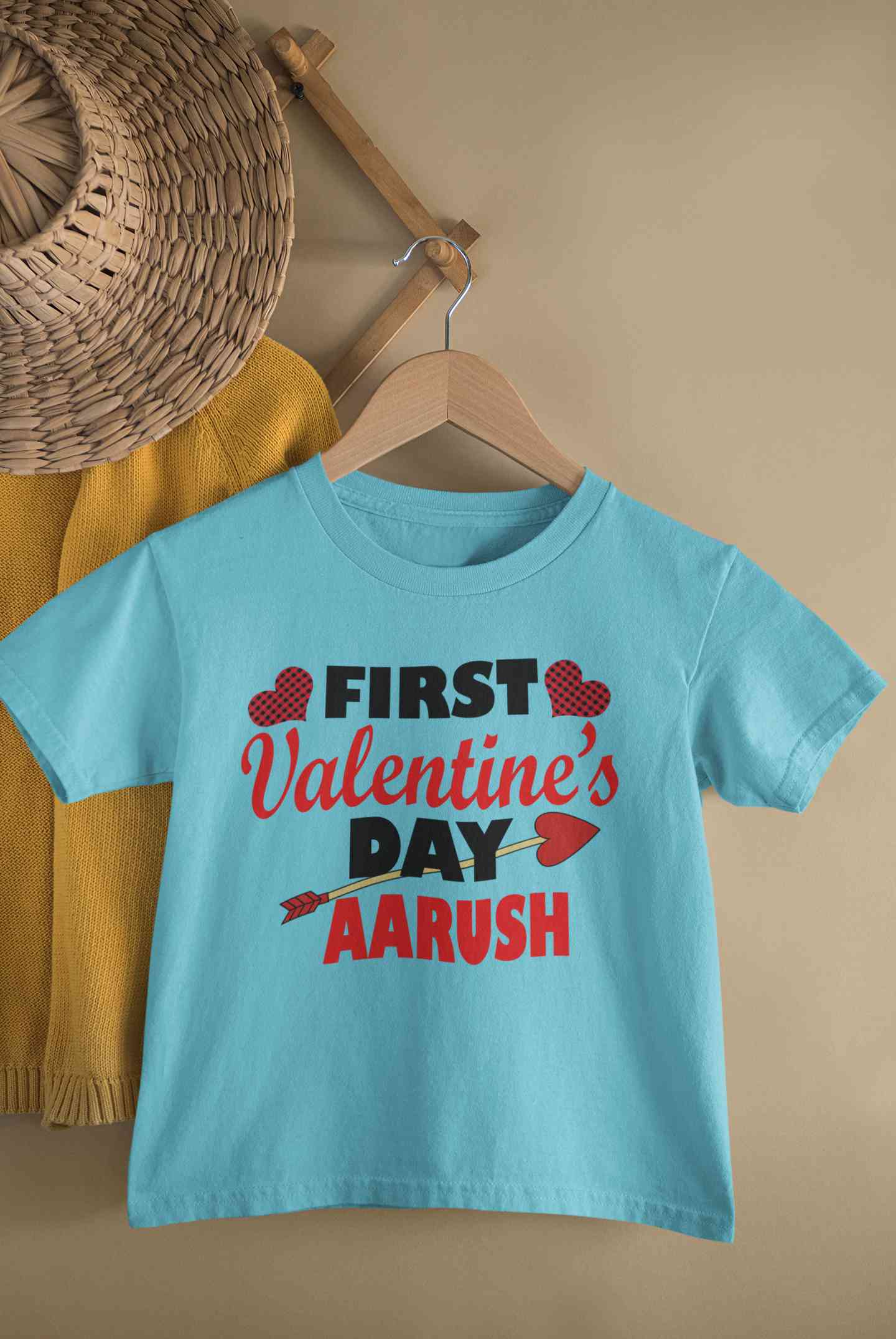 Buy Custom Name First Valentine Half Sleeves T-Shirt for Boy-FashionRazor