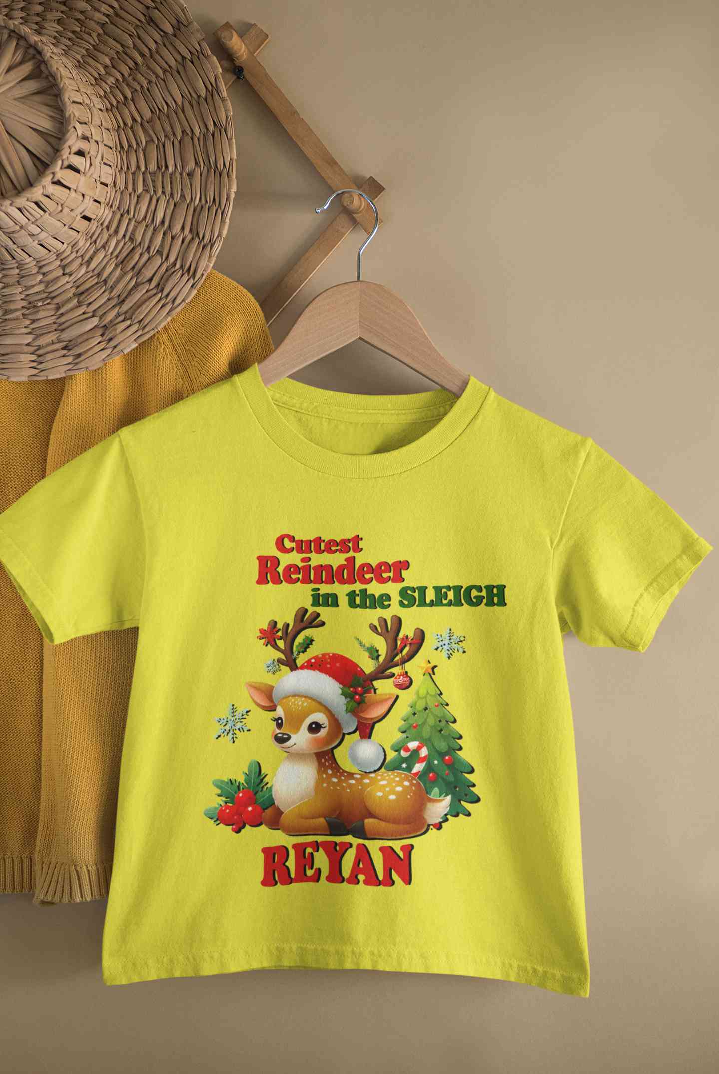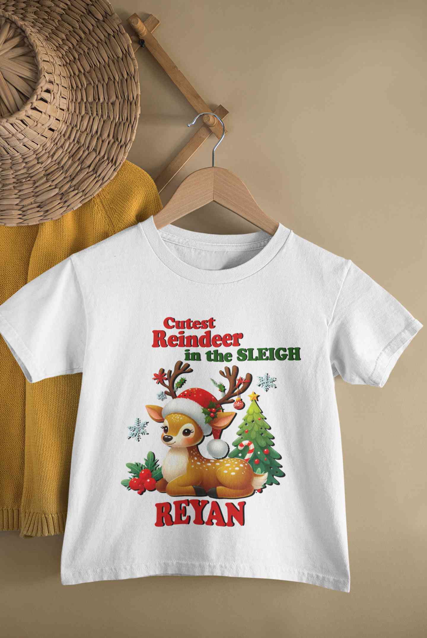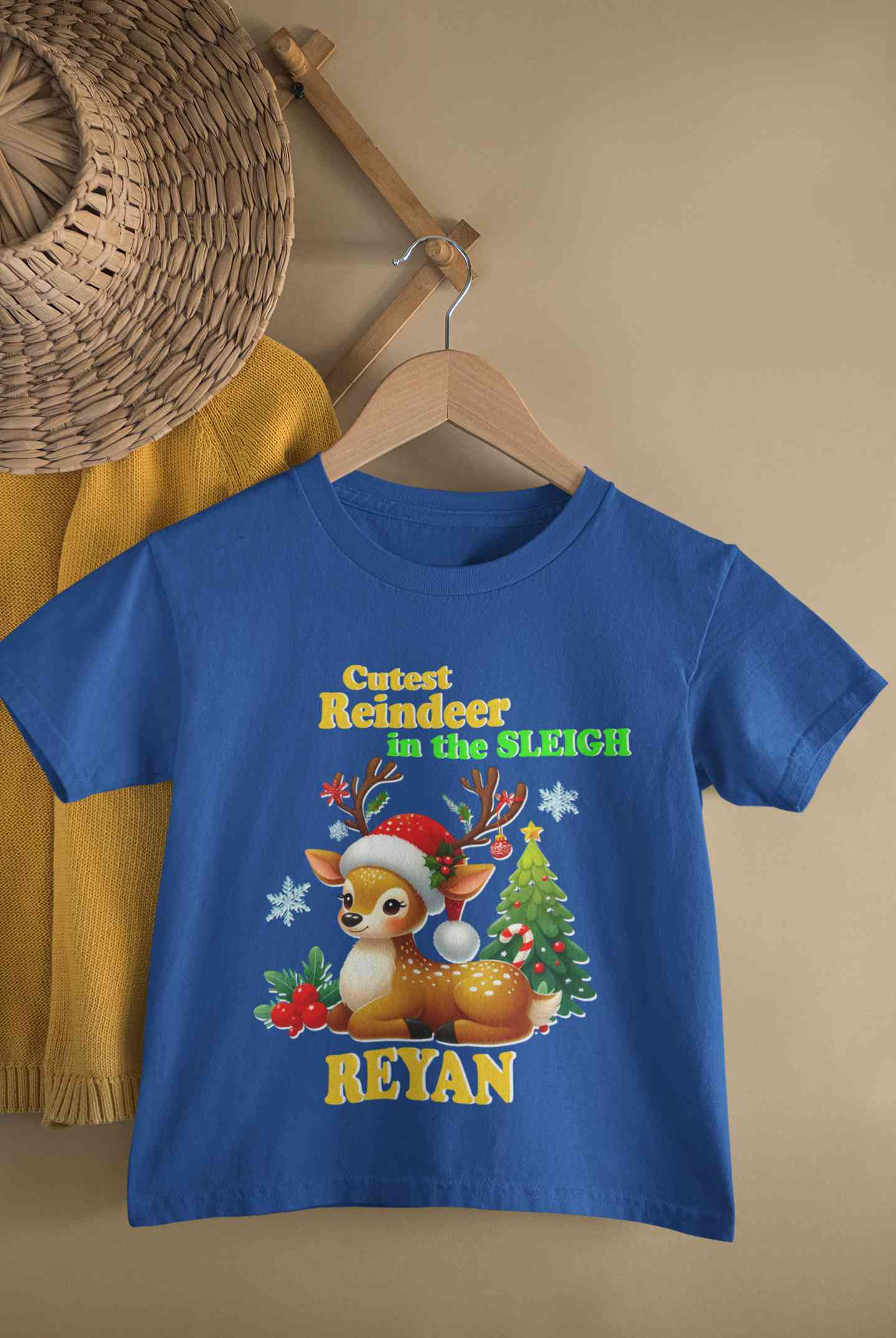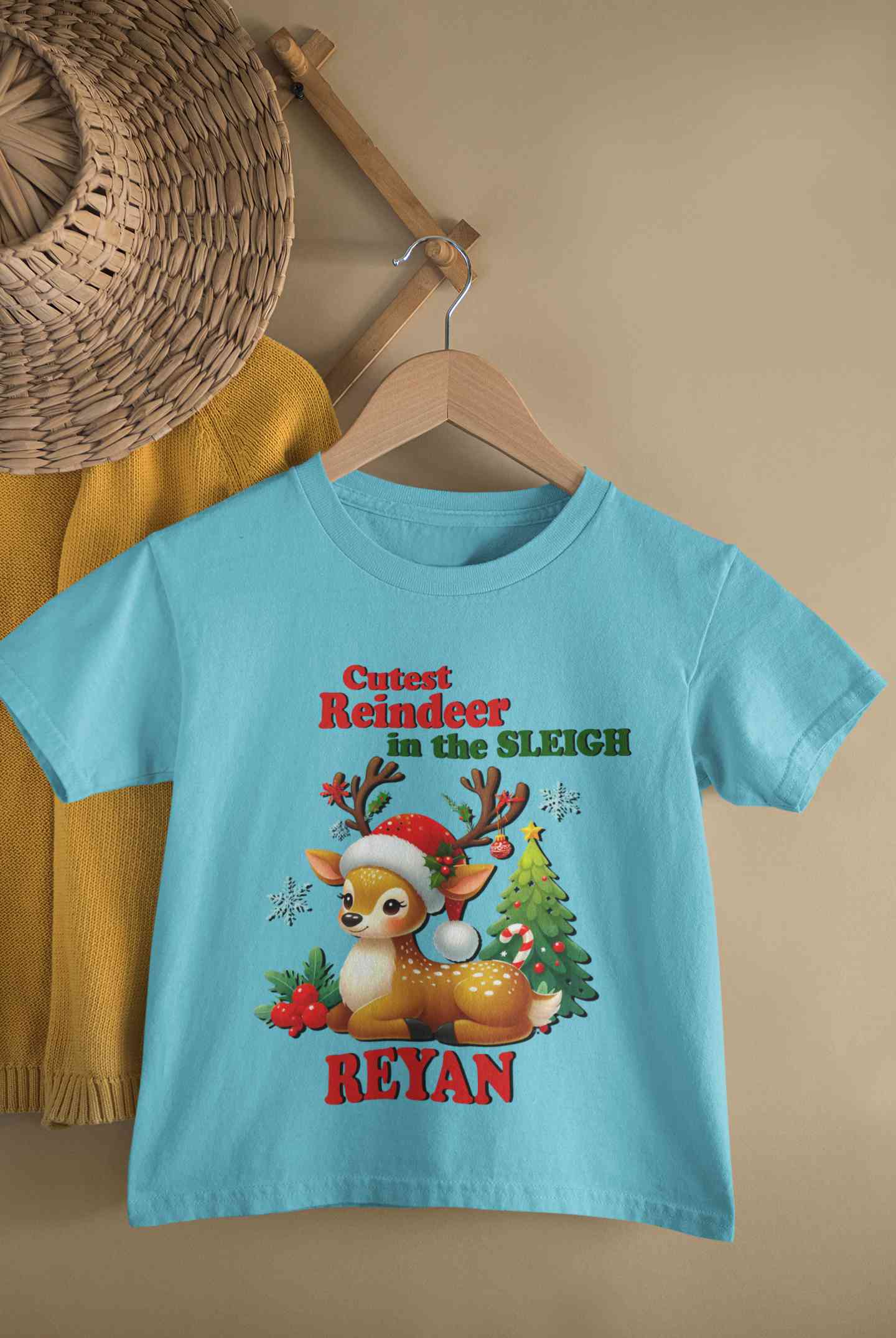 Buy Custom Name Cutest Reindeer In The Sleigh Christmas  Half Sleeves T-Shirt for Boy-FashionRazor