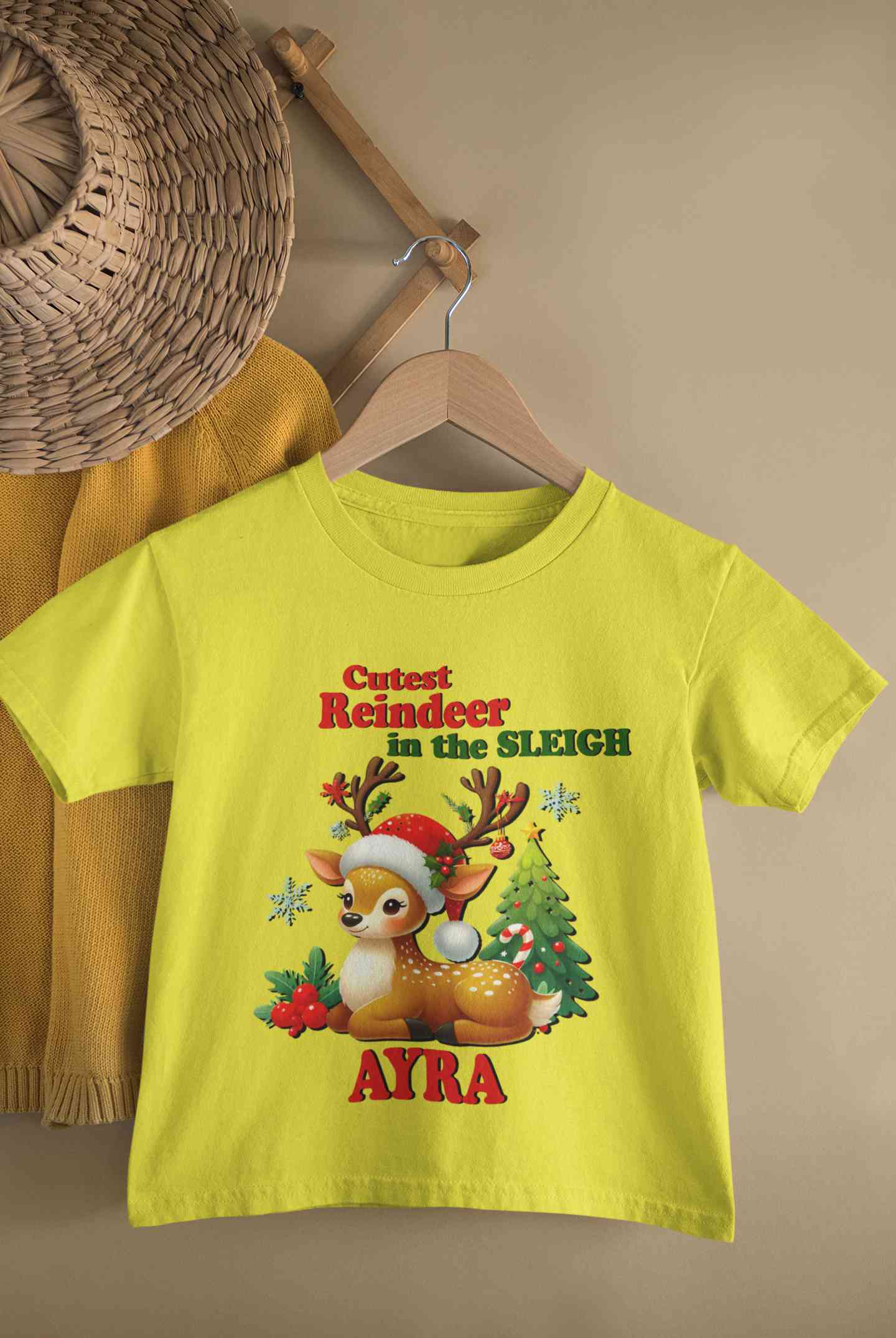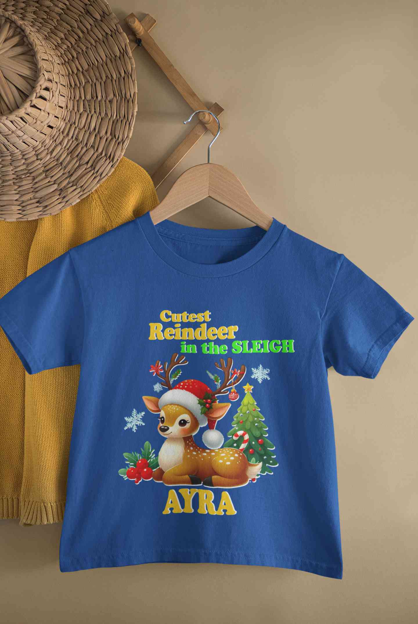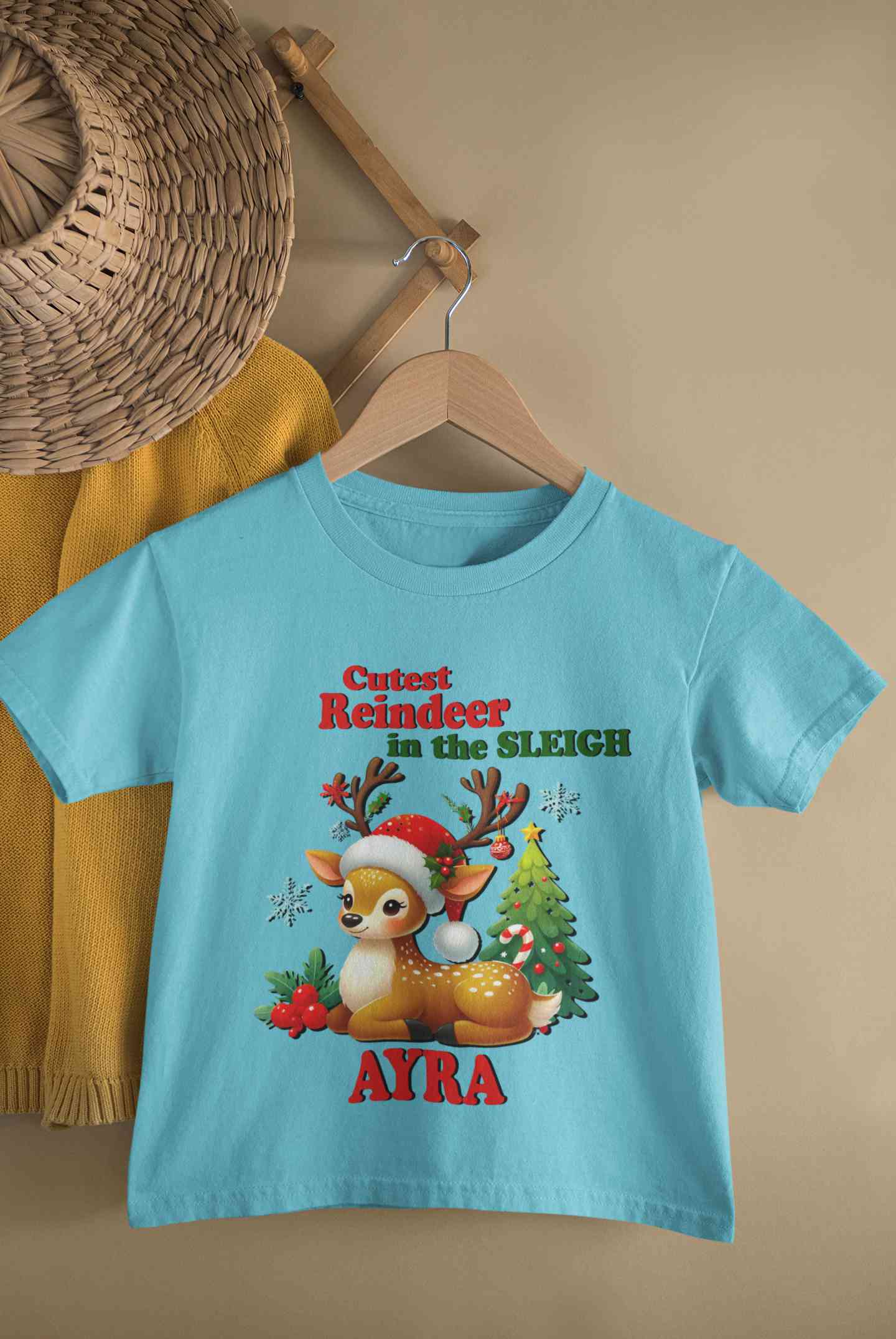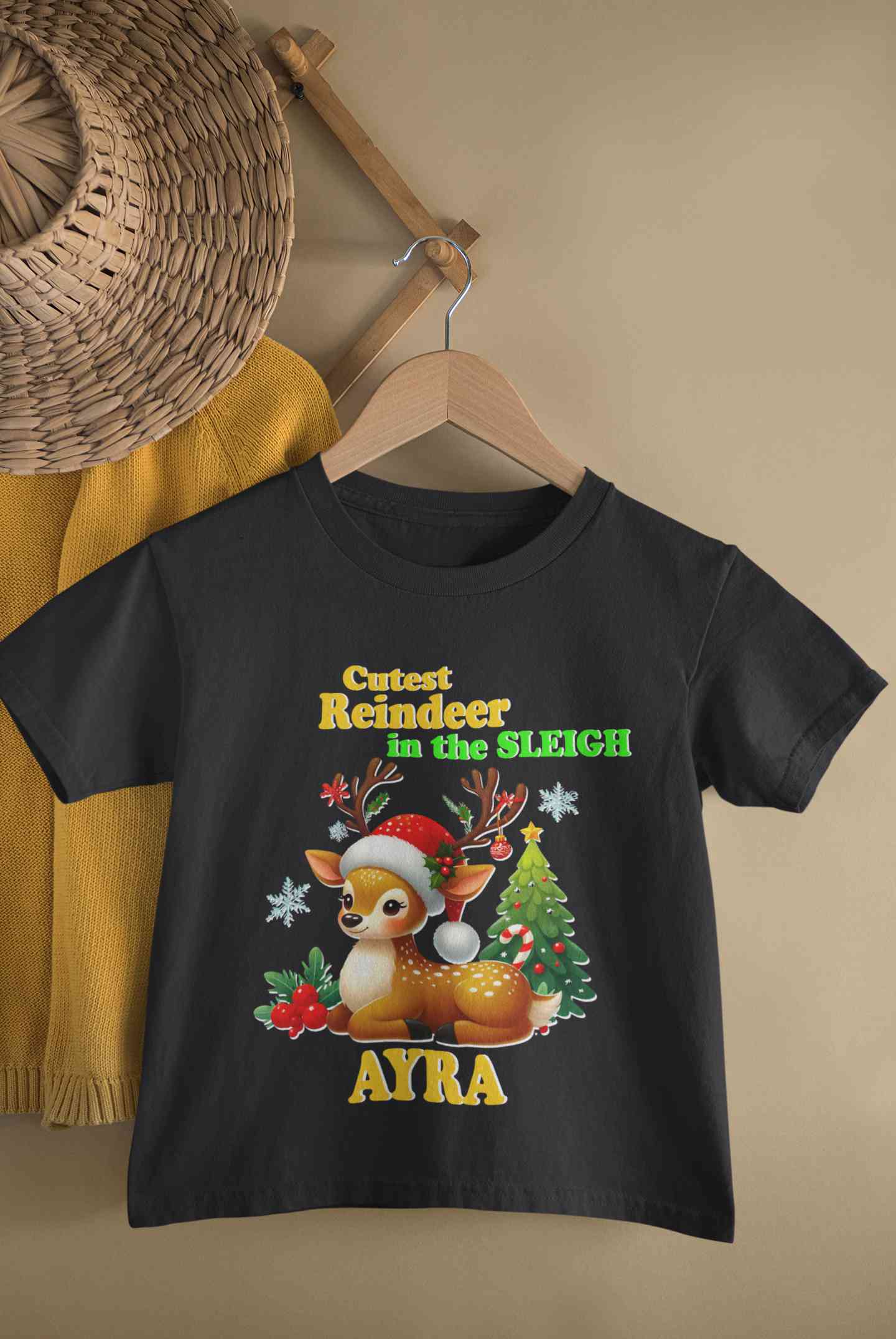 Custom Name Cutest Reindeer In The Sleigh Christmas Half Sleeves T-Shirt For Girls -FashionRazor