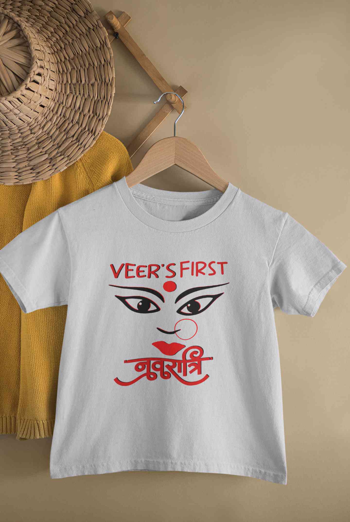 Custom Name First Navratri Durga Pooja Half Sleeves T-Shirt for Boy-FashionRazor