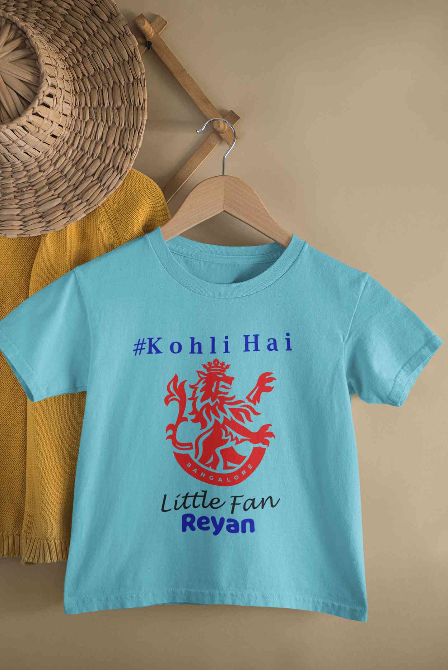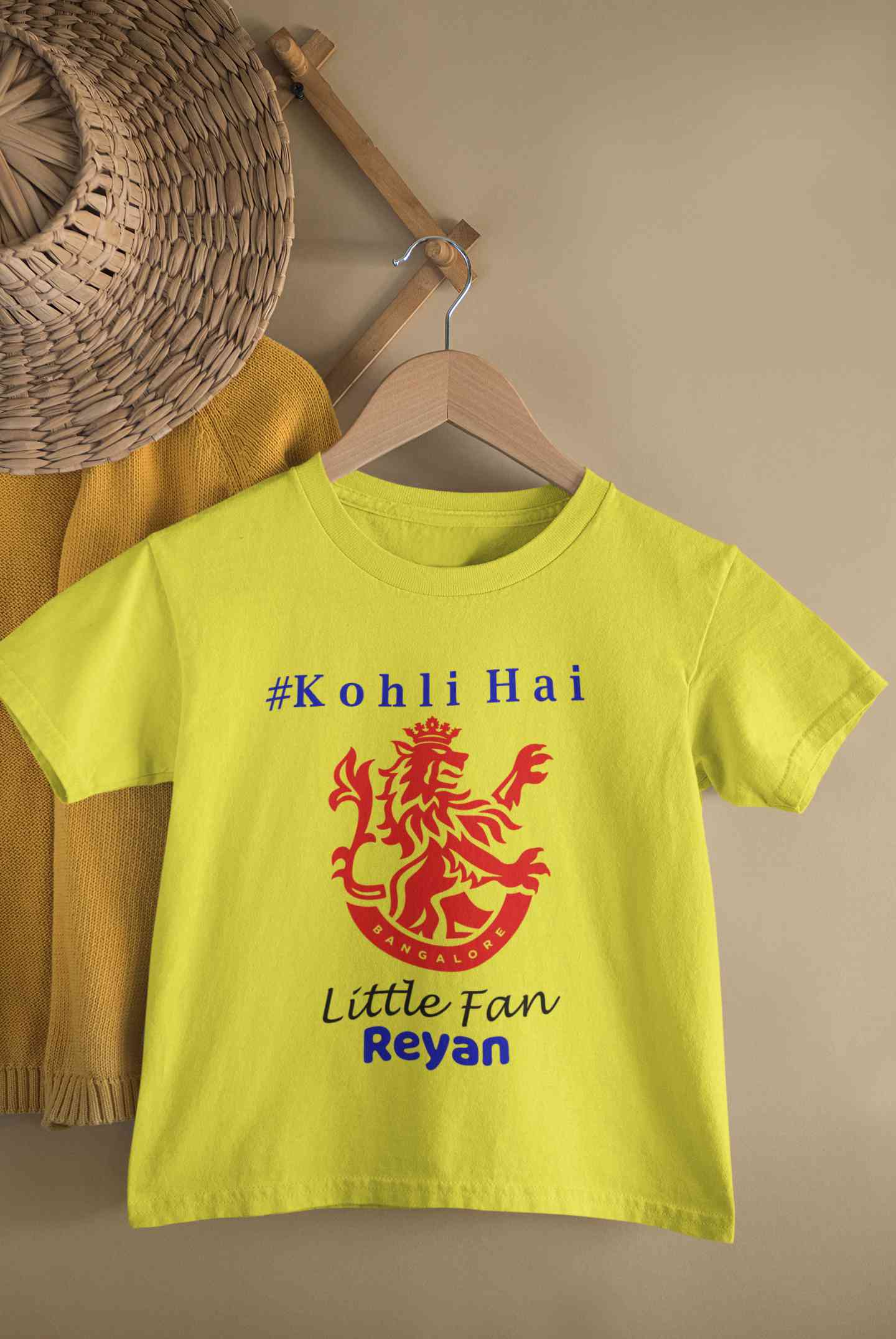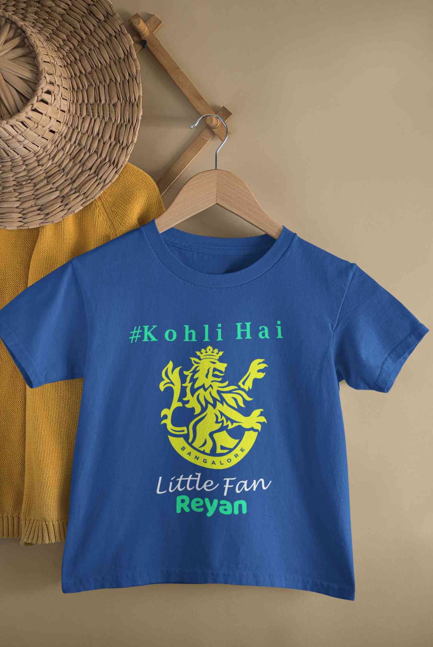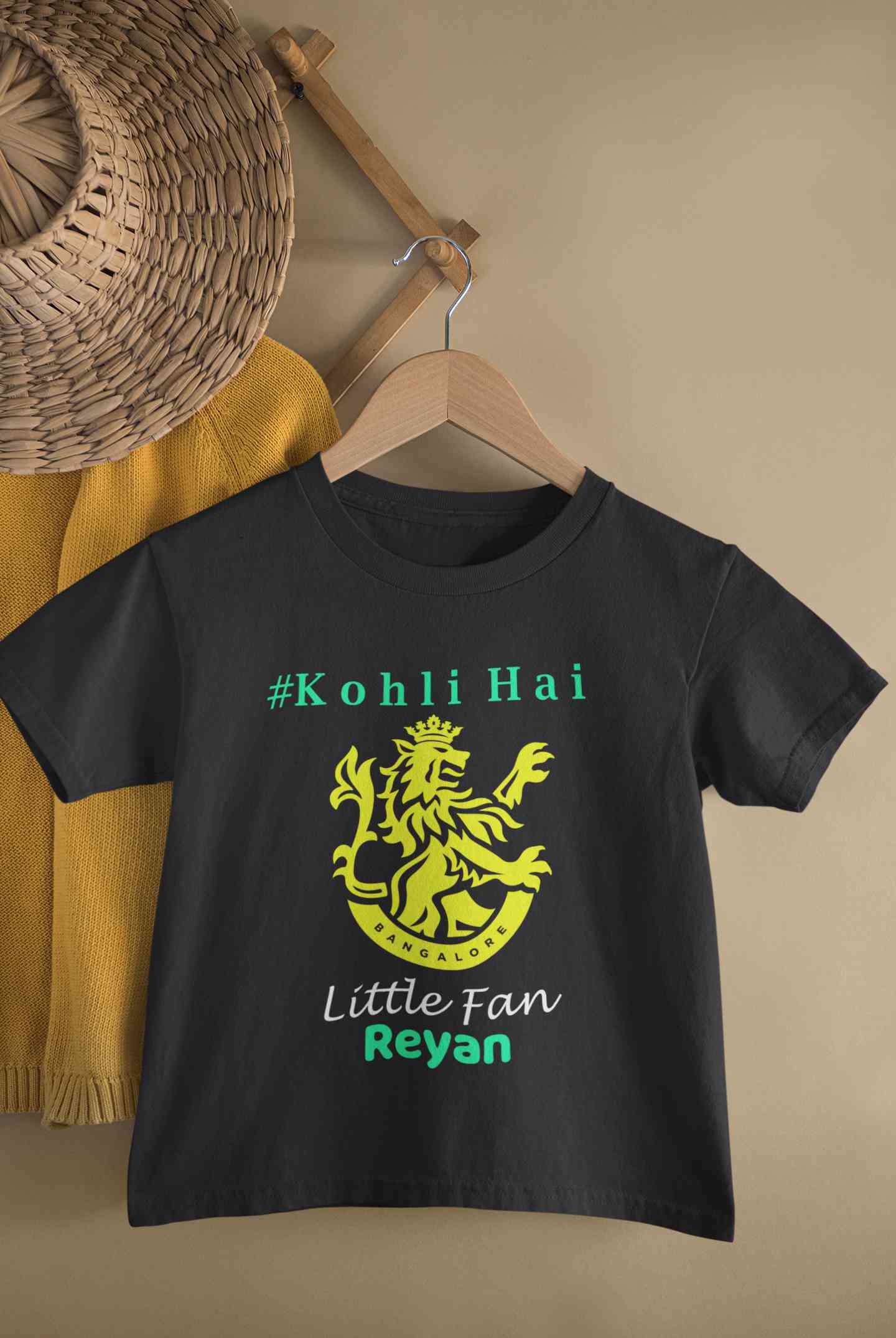 Custom Name IPL RCB Royal Challengers Bangalore Kohli Hai Boy Half Sleeves T-Shirt for Boy-FashionRazor