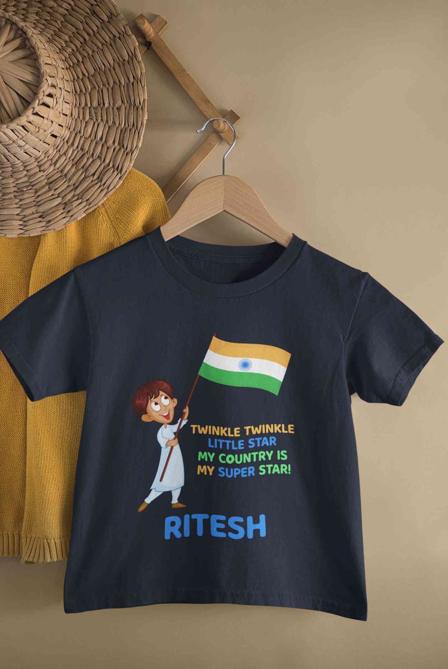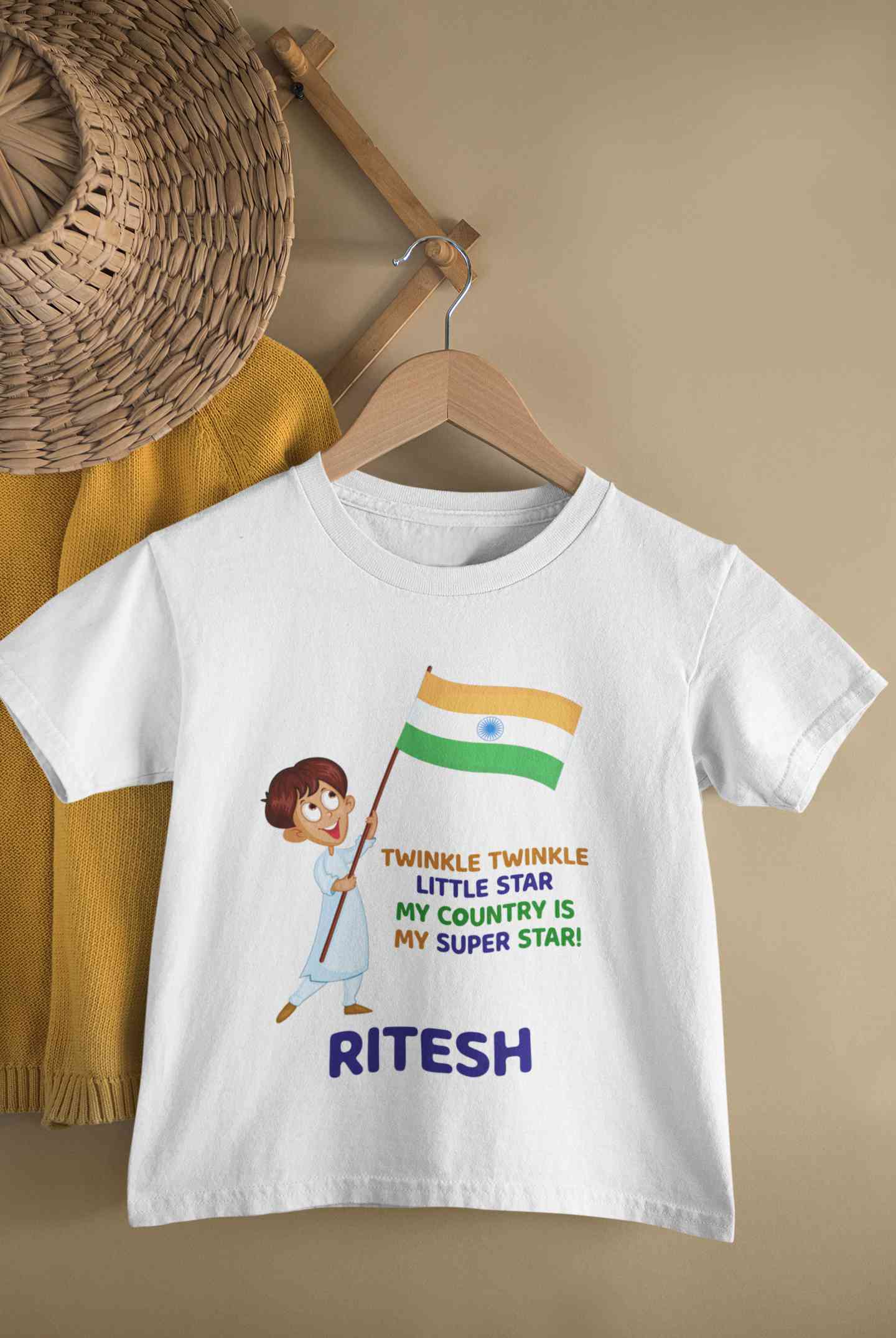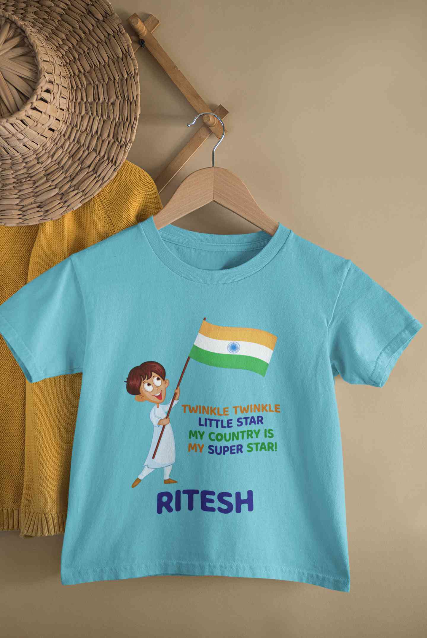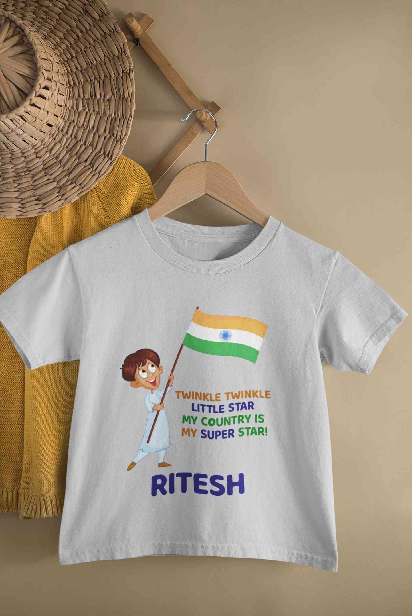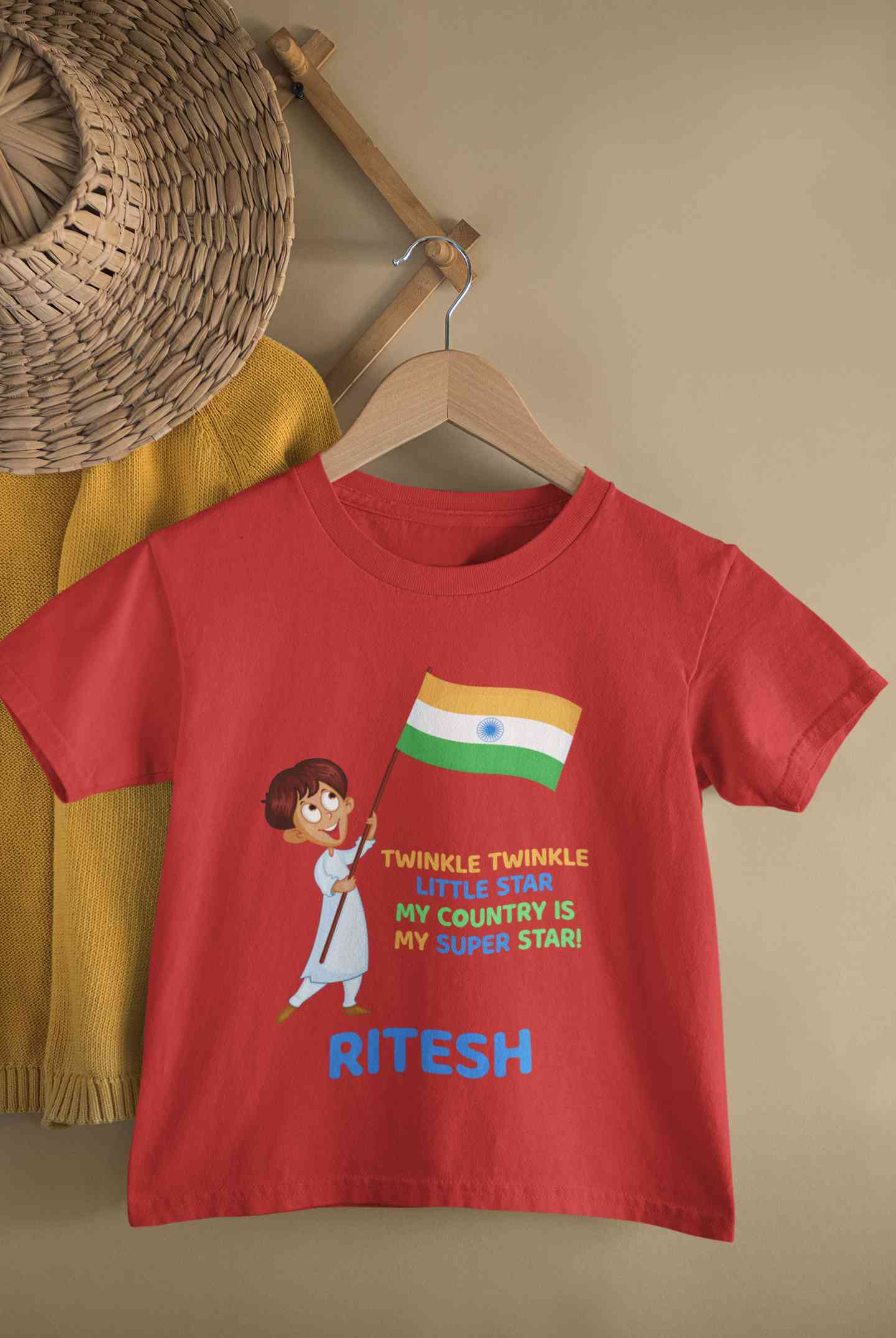 Custom Name My Country Is My Superstar Independence Day Half Sleeves T-Shirt for Boy-FashionRazor