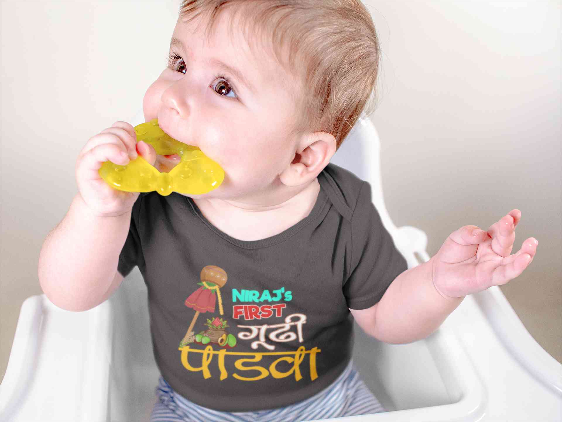 Custom Name My First Gudipadwa Rompers for Baby Boy- FashionRazor