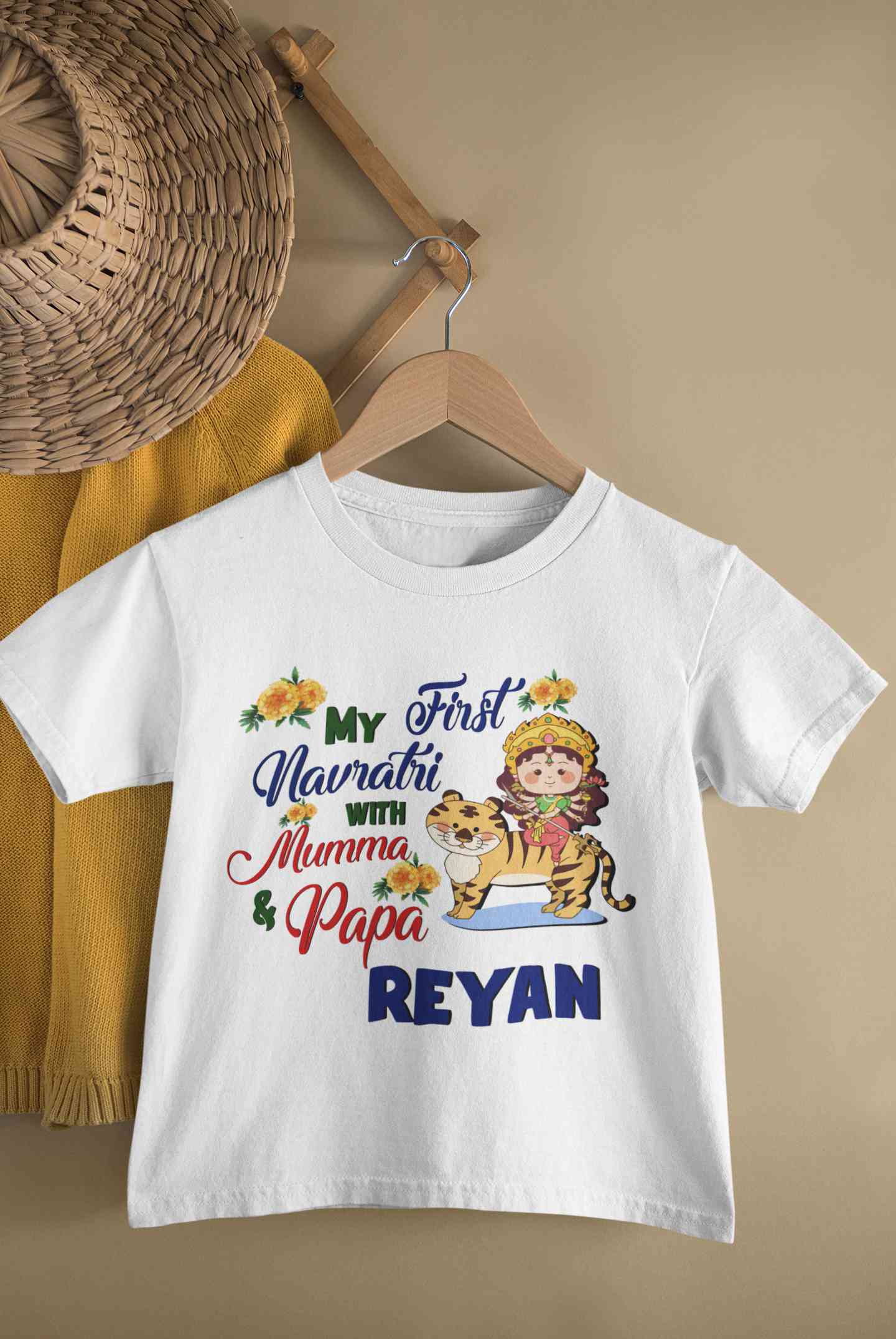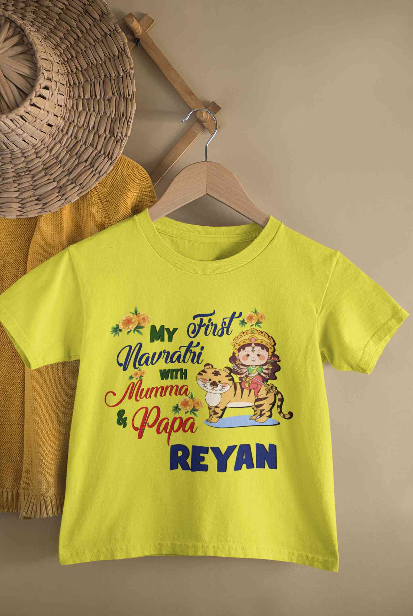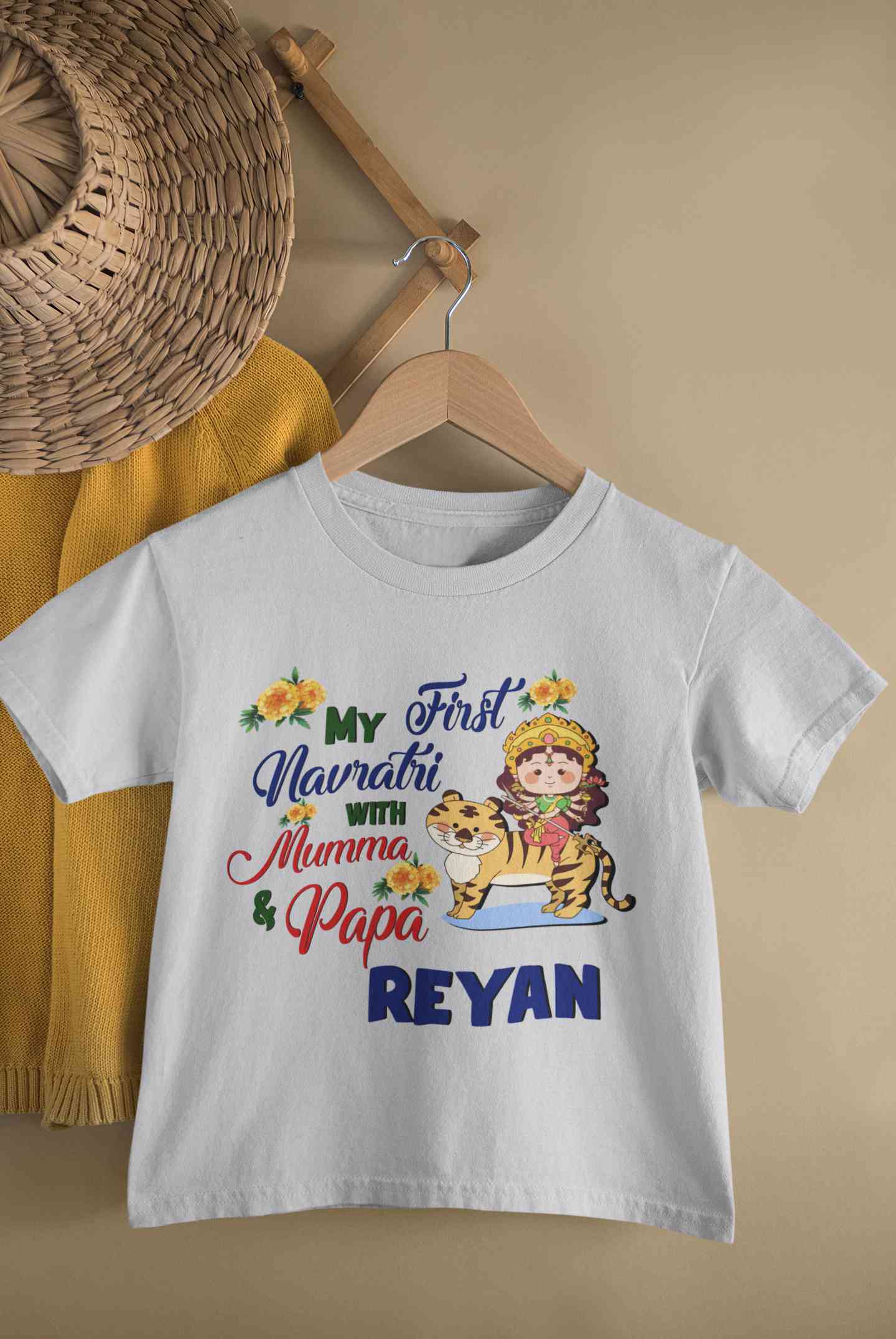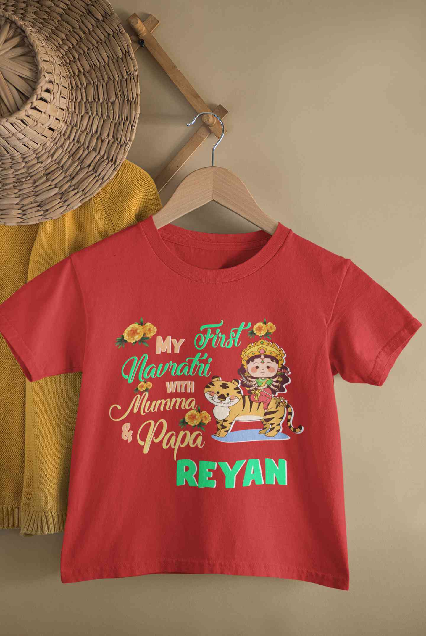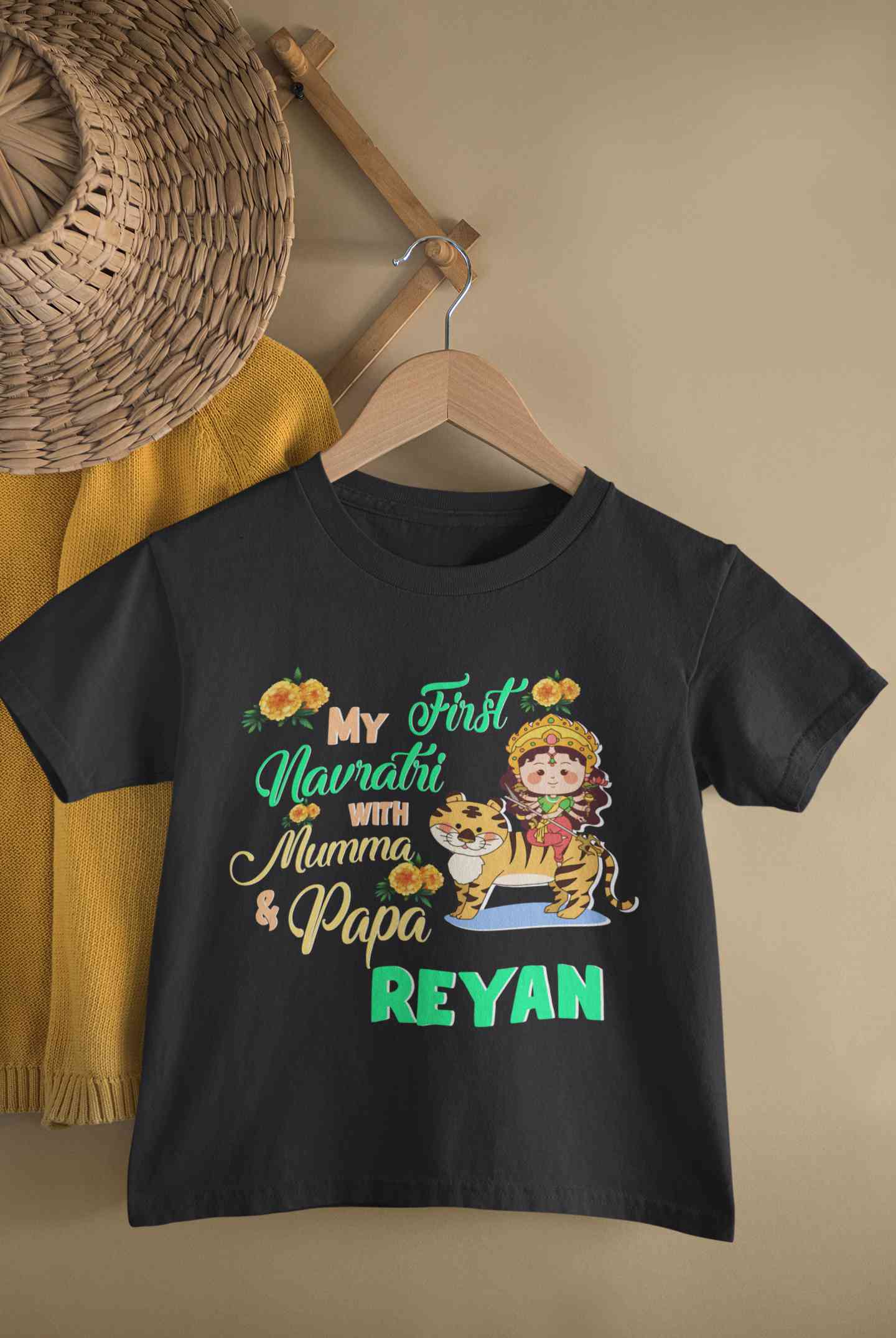 Buy Custom Name My First Navratri With Mumma And Papa Half Sleeves T-Shirt for Boy-FashionRazor