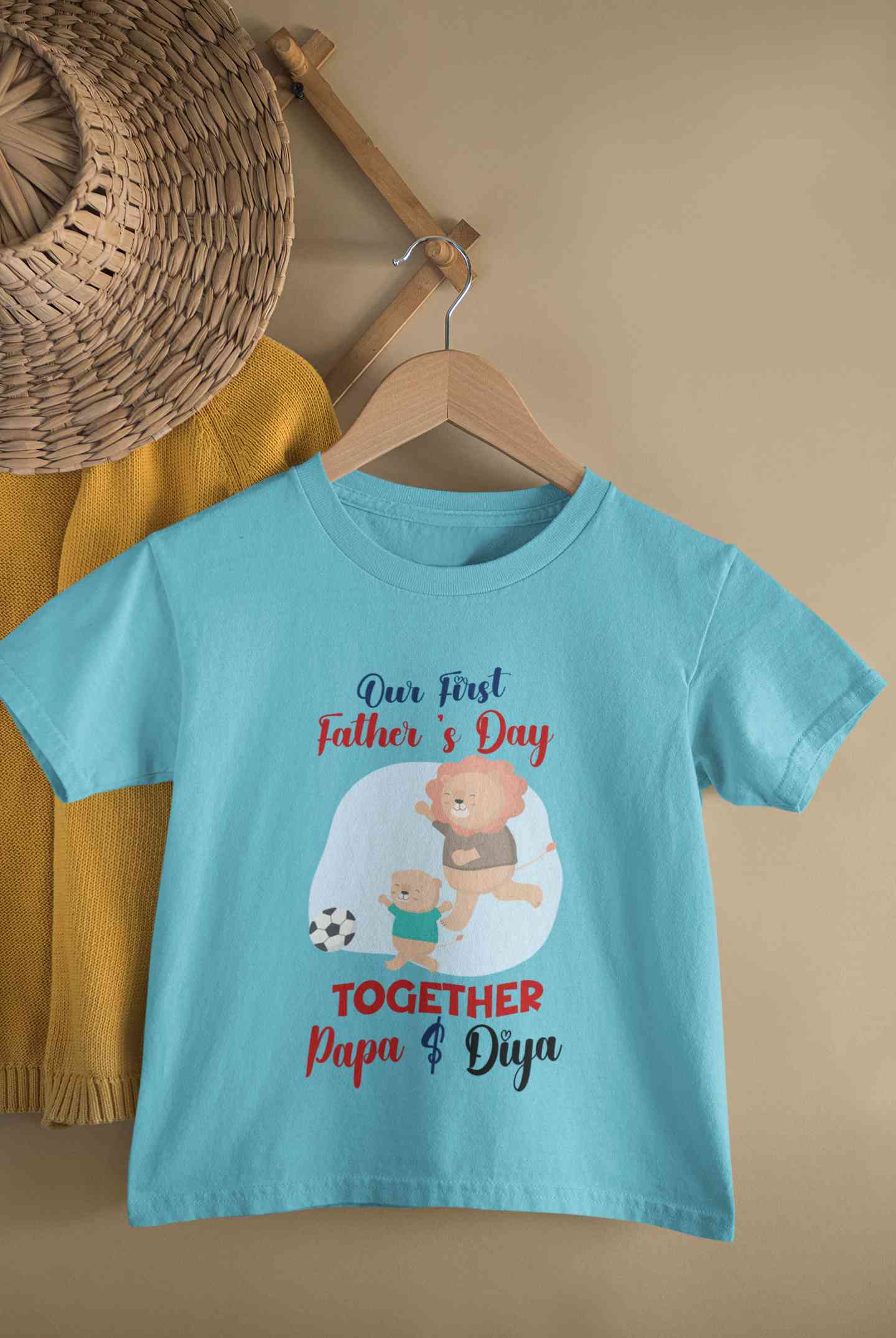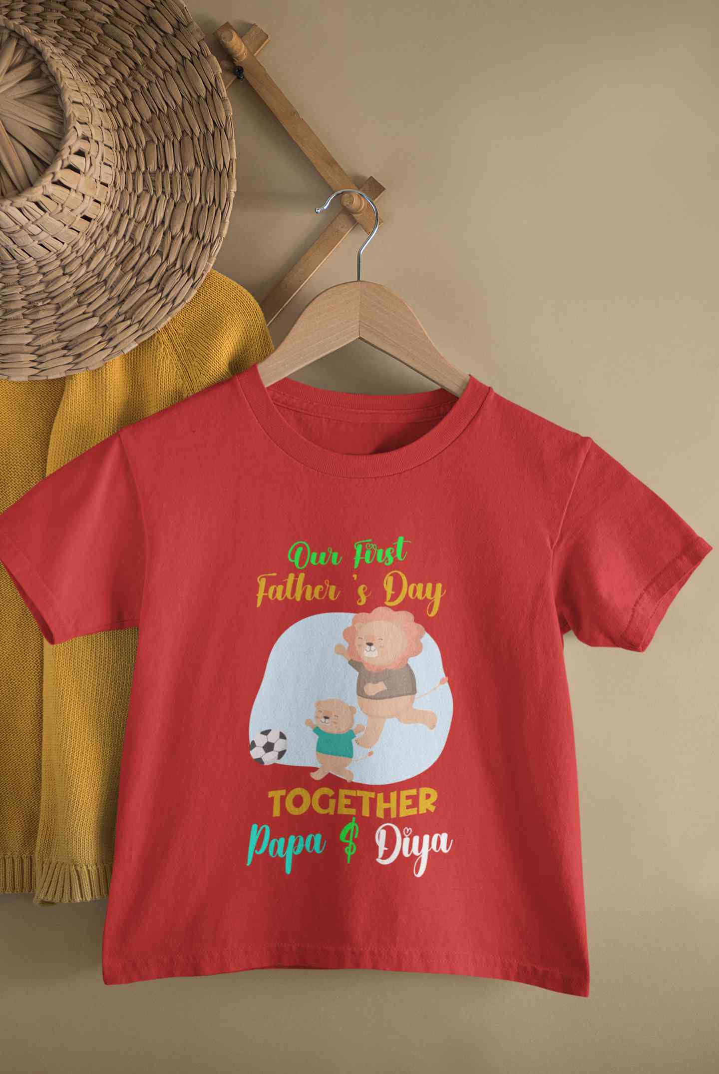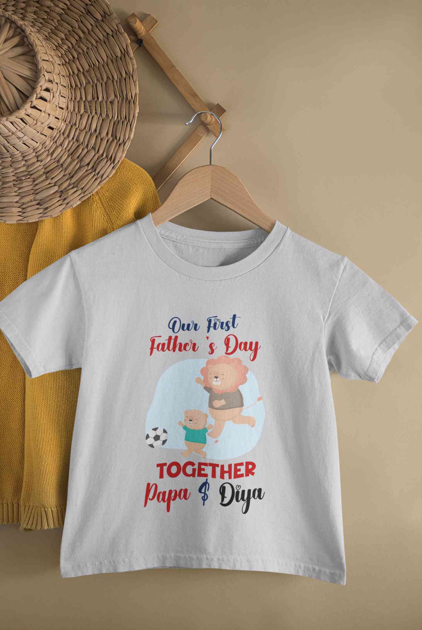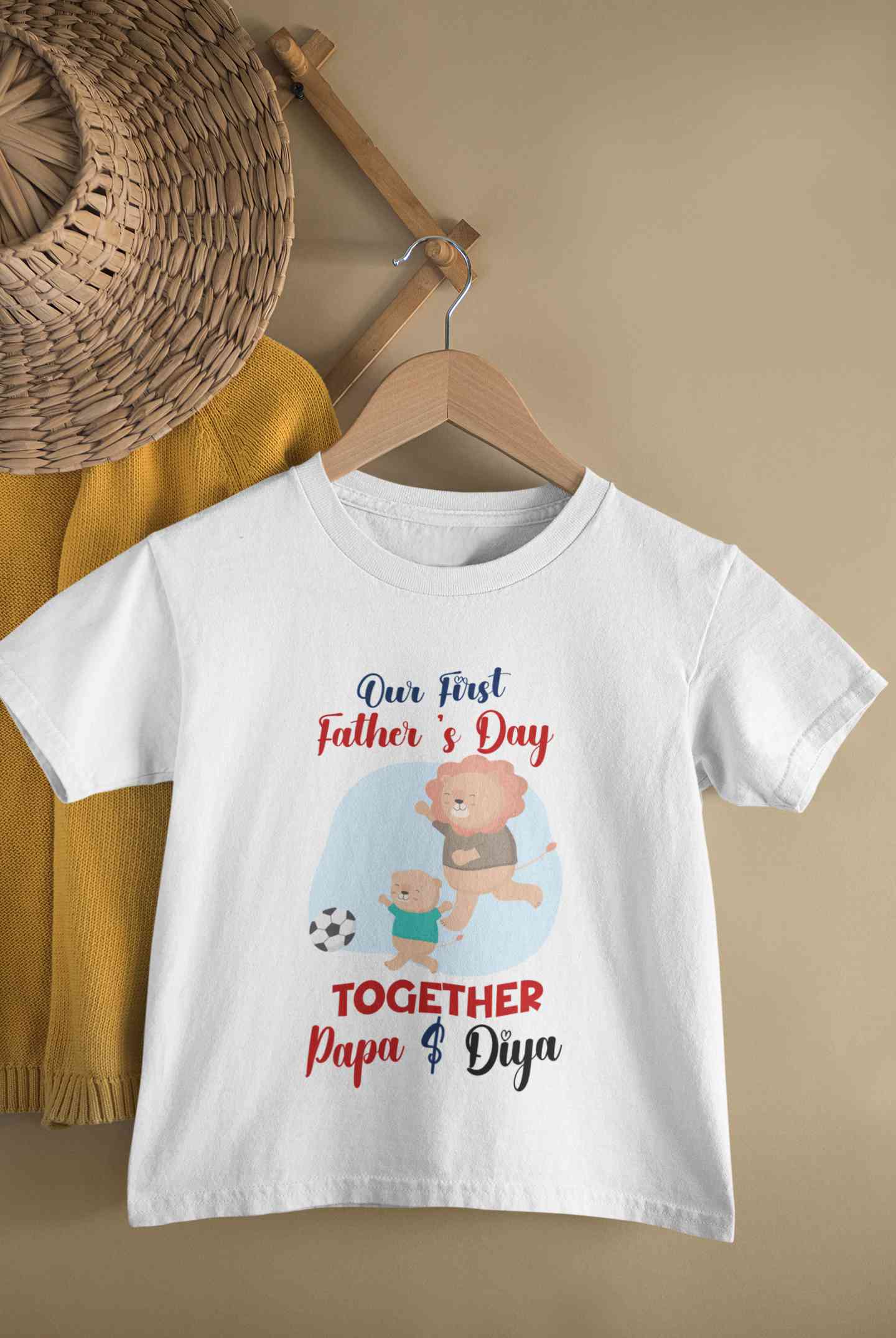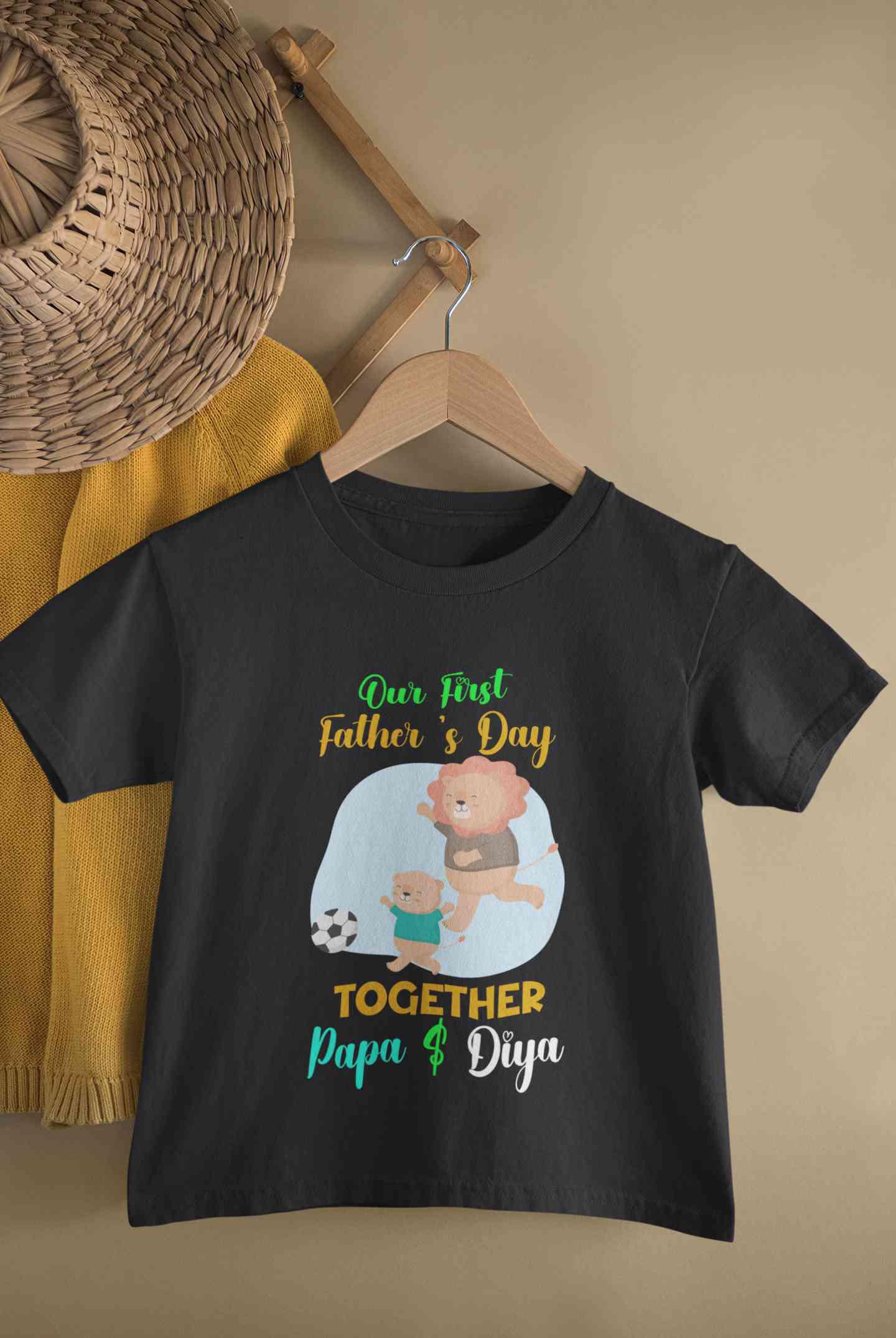 Custom Name Our First Father Day Half Sleeves T-Shirt For Girls -FashionRazor