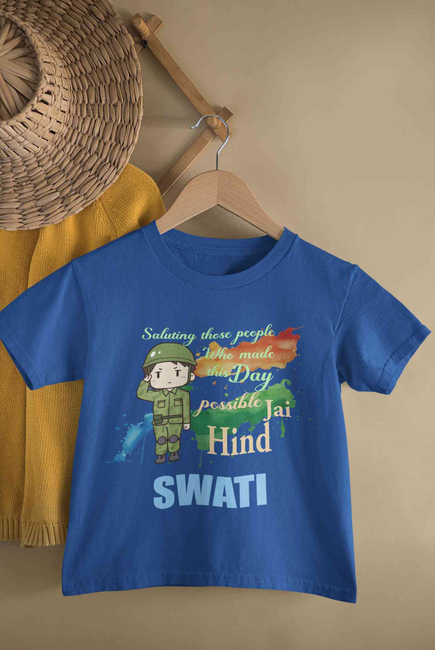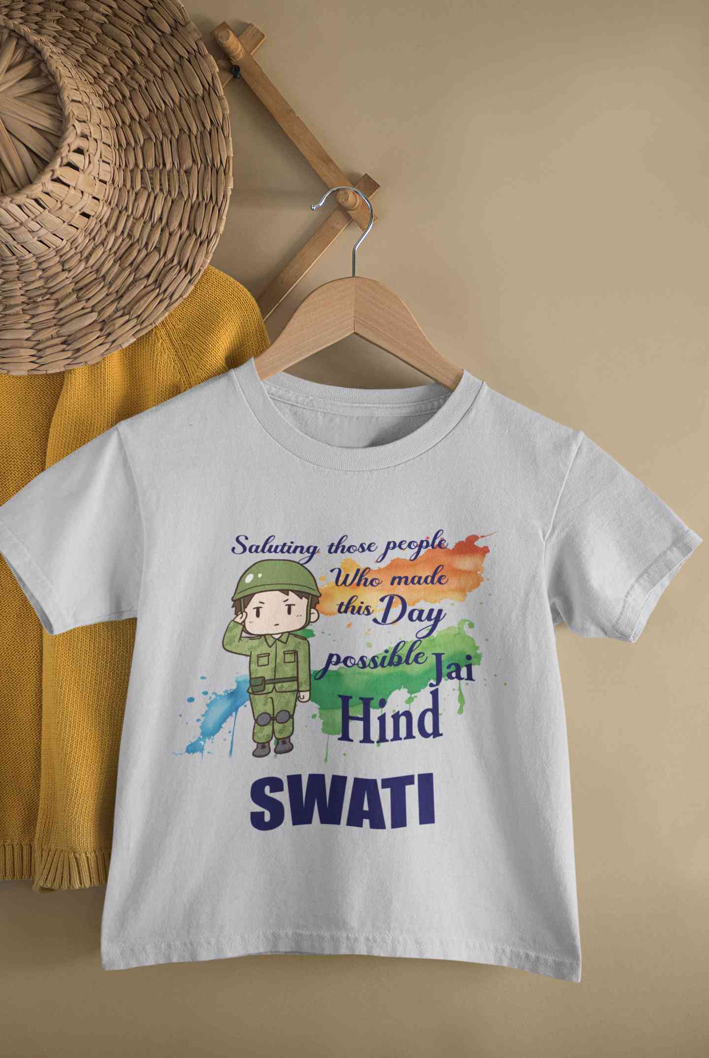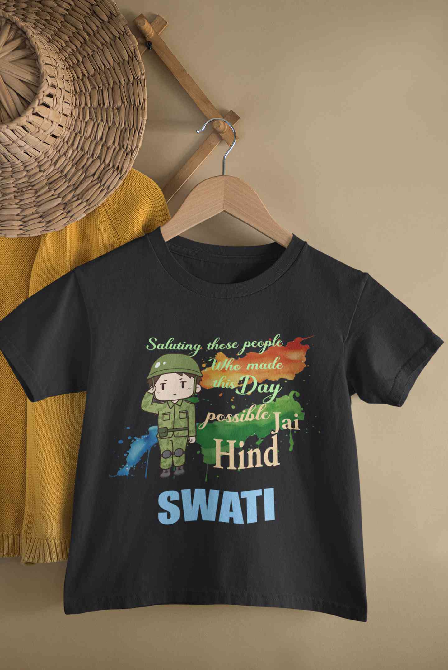 Custom Name Saluting Those People Who Made This Day Possible Jai Hind Independence Day Half Sleeves T-Shirt For Girls -FashionRazor