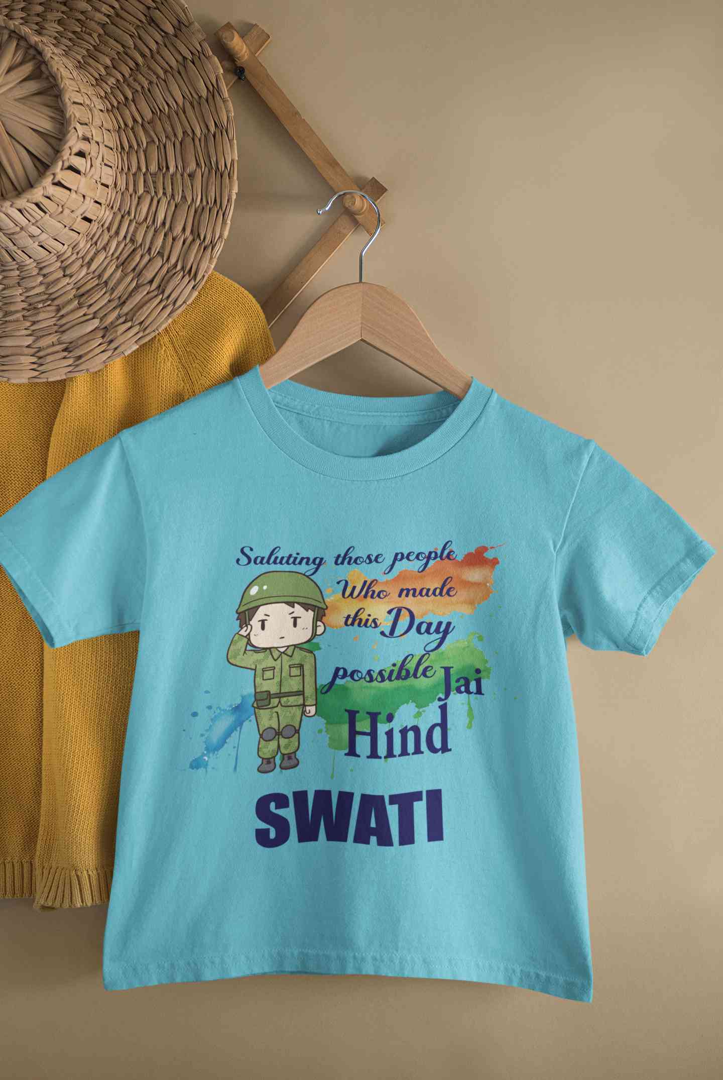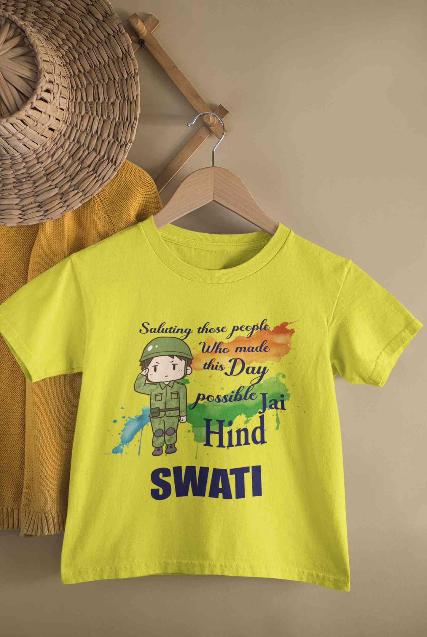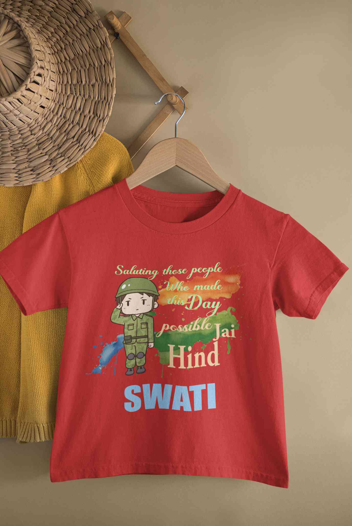 Custom Name Saluting Those People Who Made This Day Possible Jai Hind Independence Day Half Sleeves T-Shirt For Girls -FashionRazor