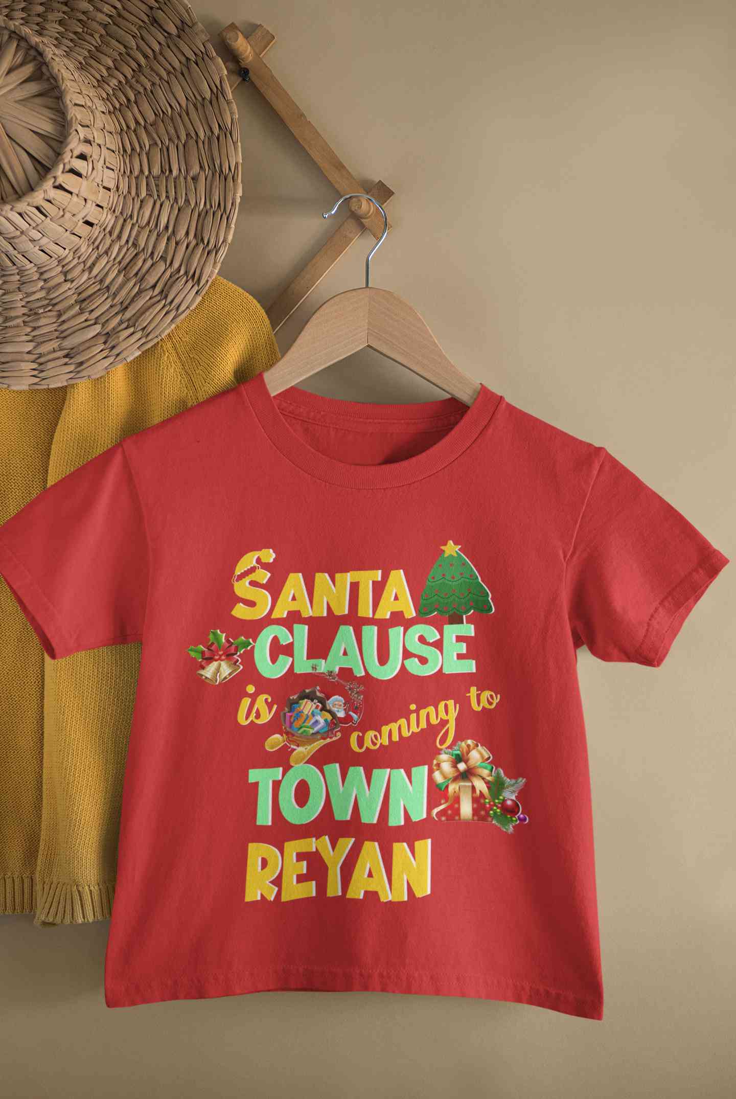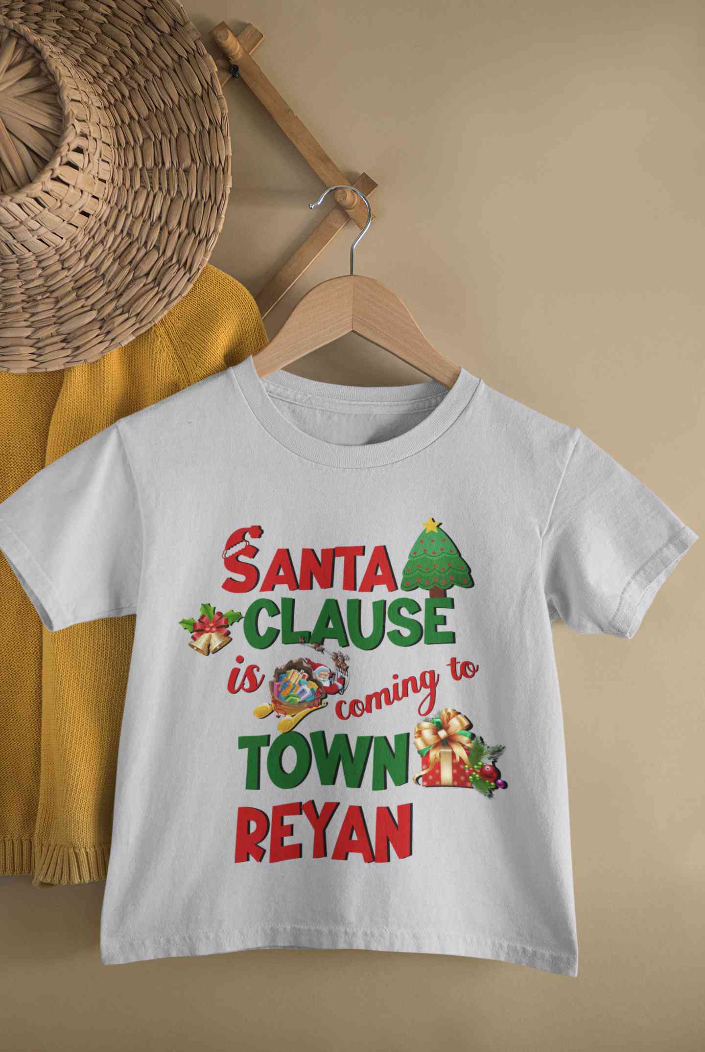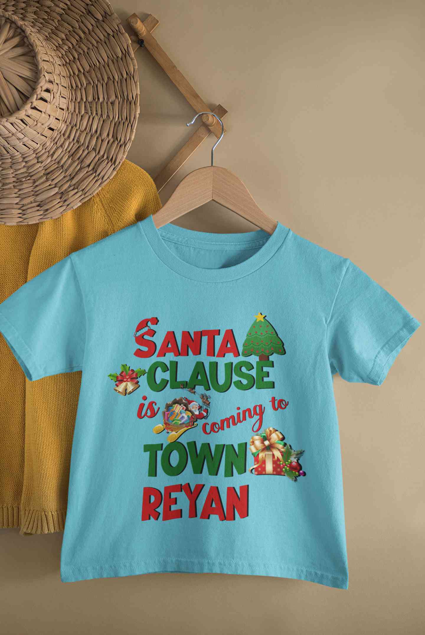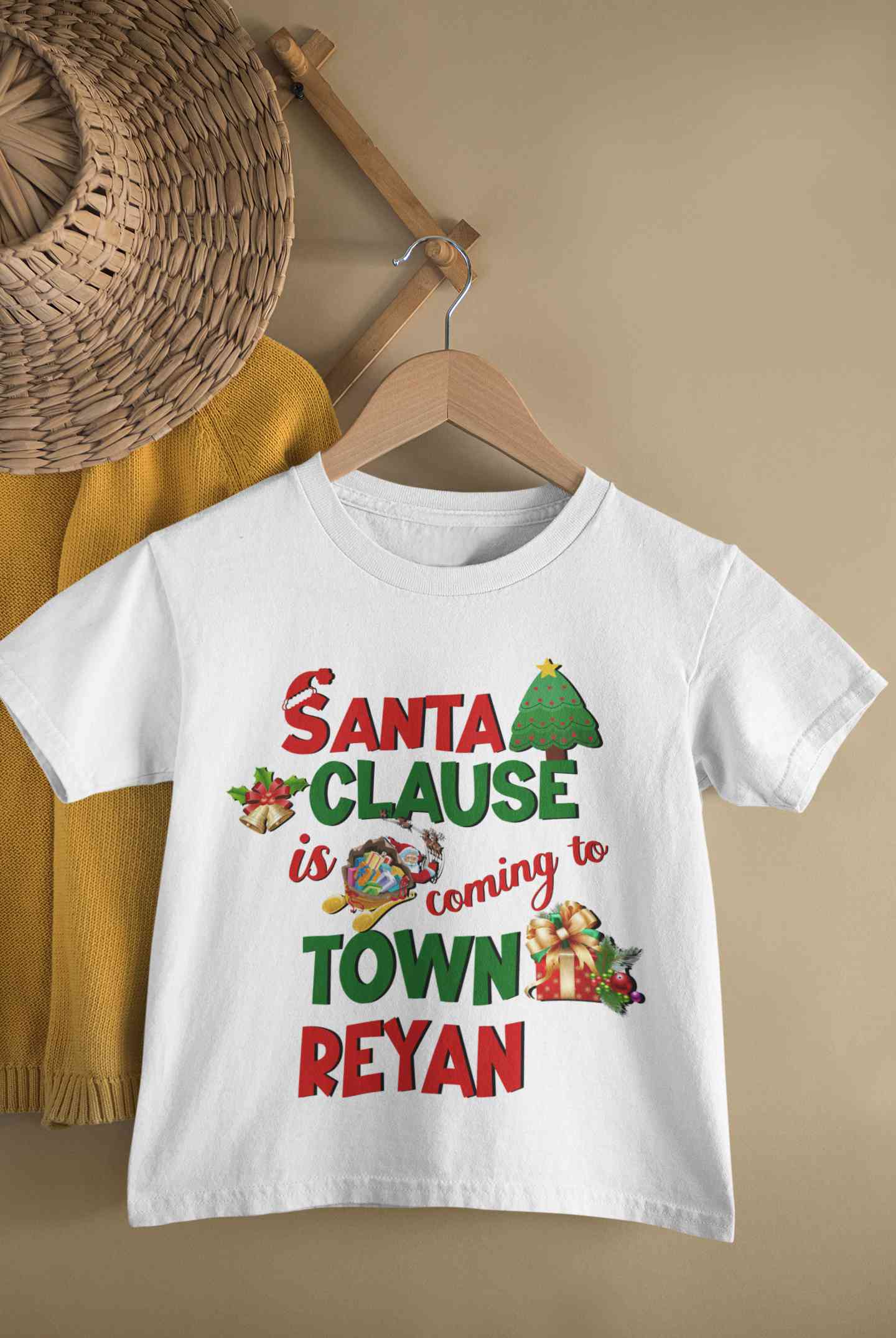 Buy Custom Name Santa Clause Is Coming To Town Christmas Half Sleeves T-Shirt for Boy-FashionRazor