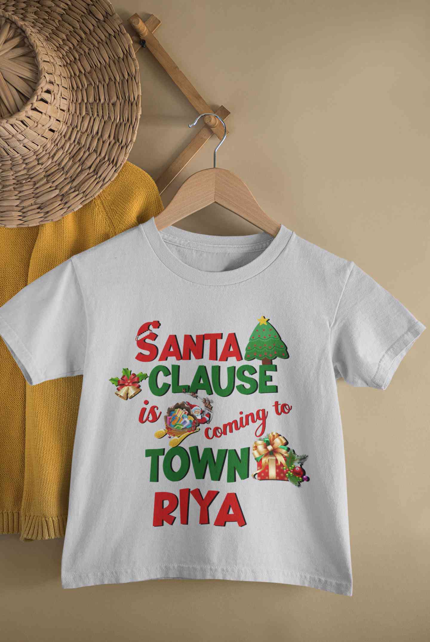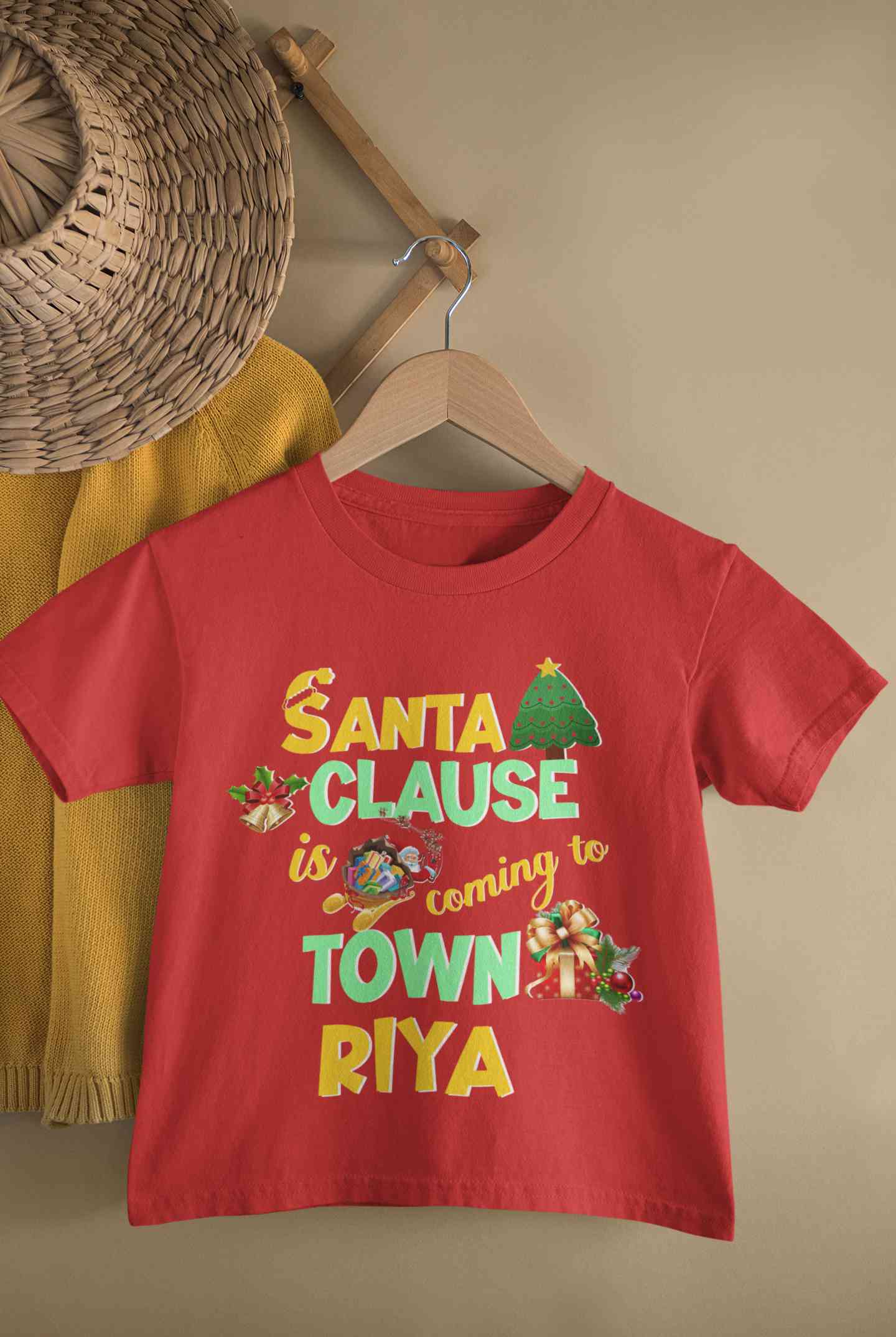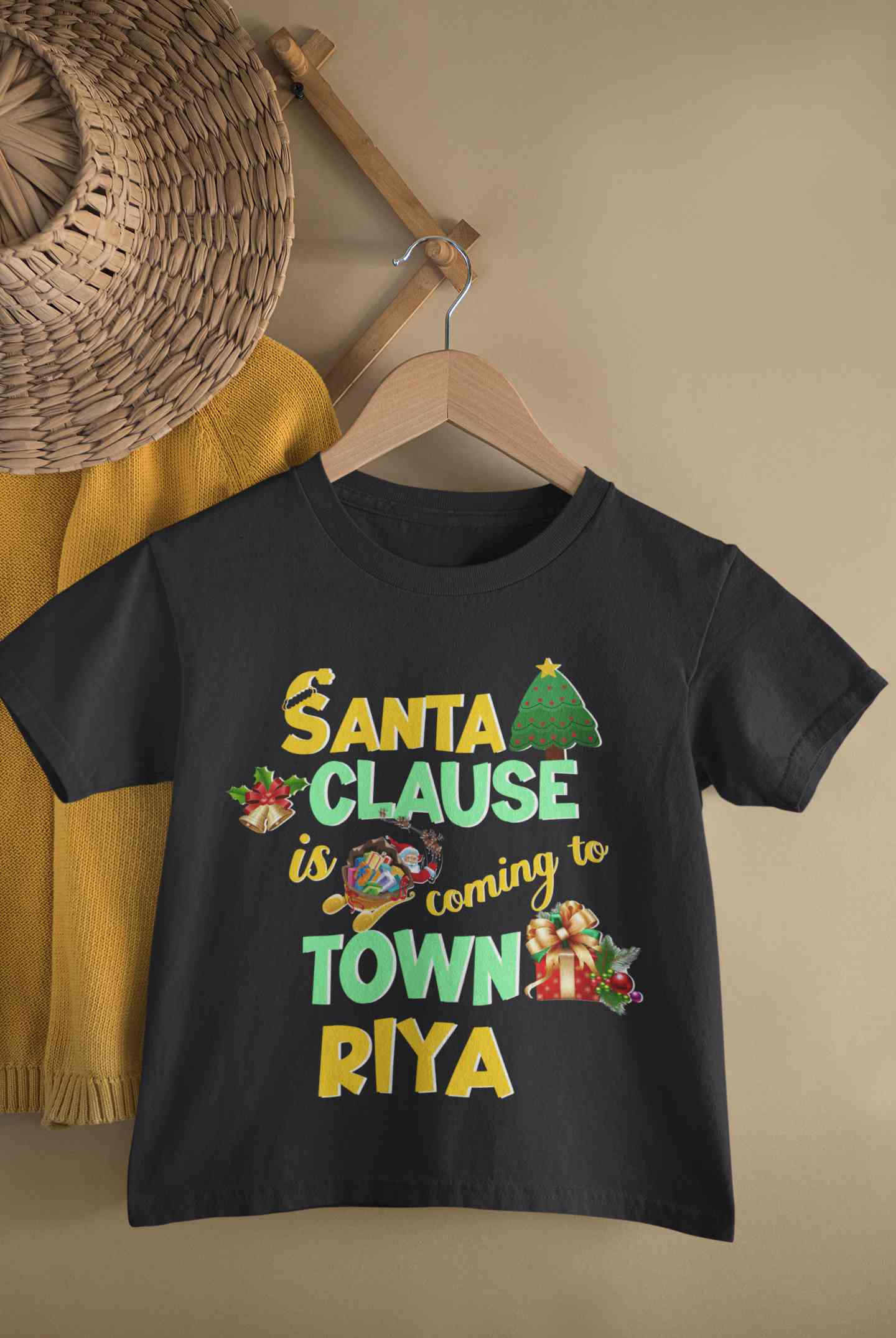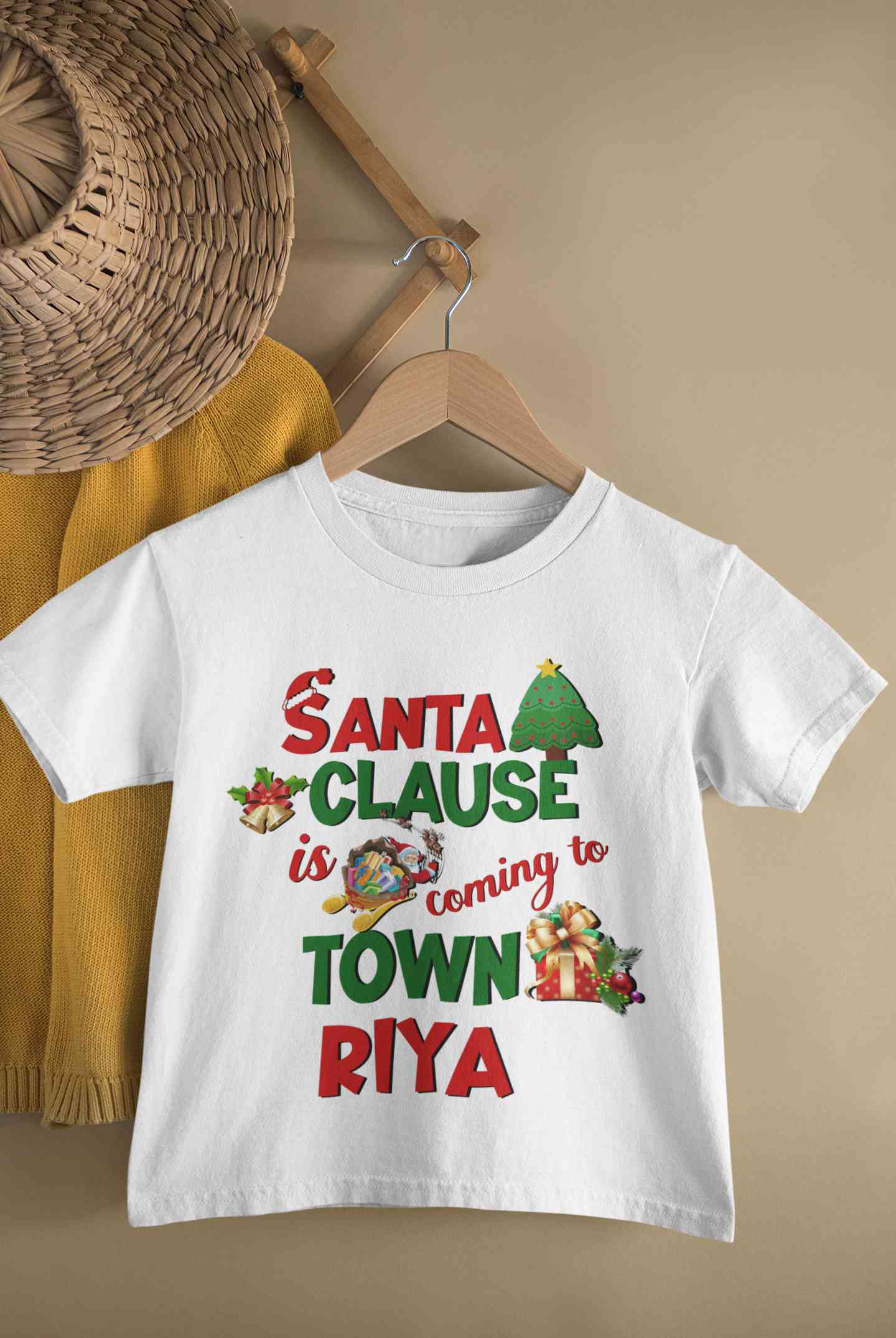 Custom Name Santa Clause Is Coming To Town Christmas Half Sleeves T-Shirt For Girls -FashionRazor
