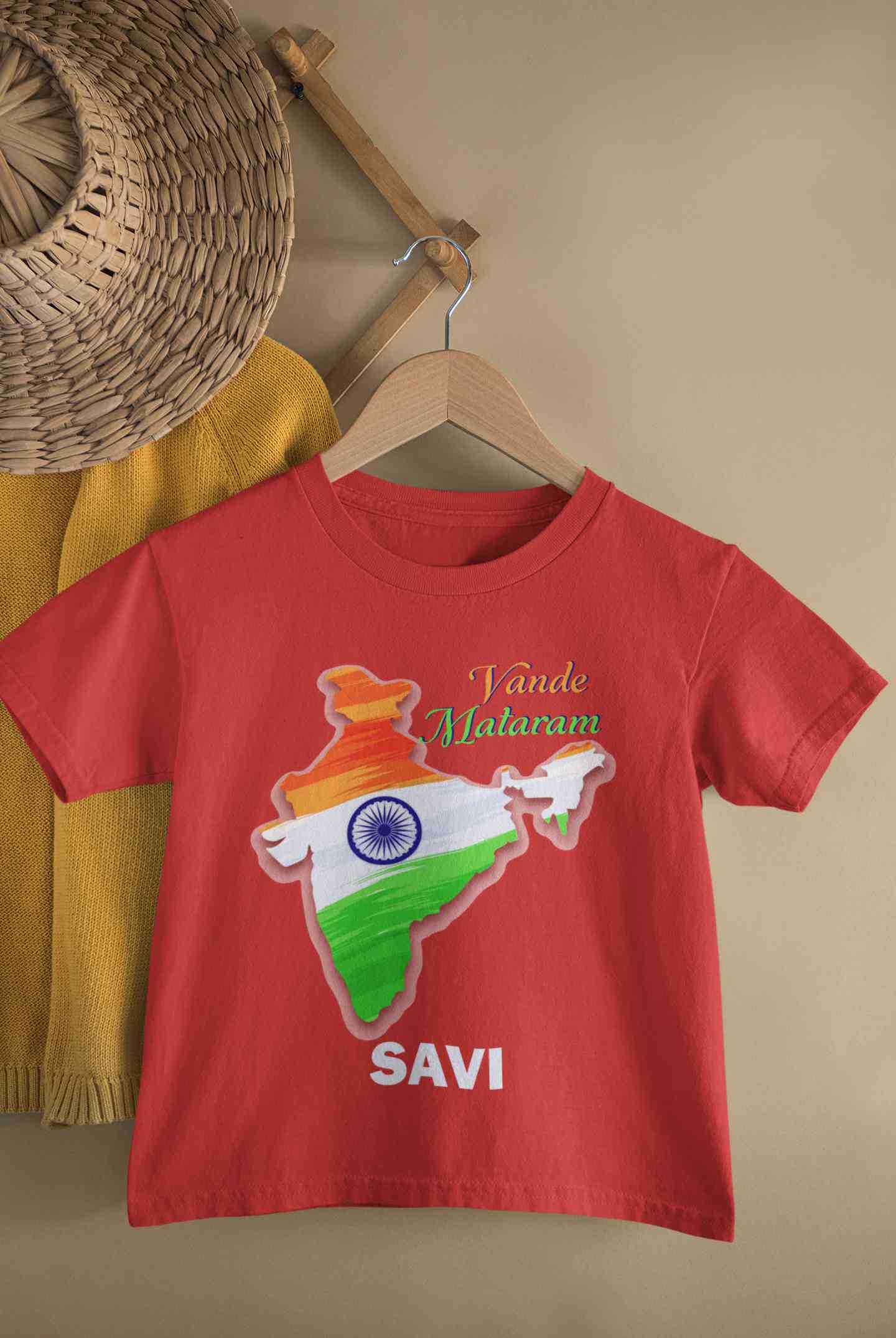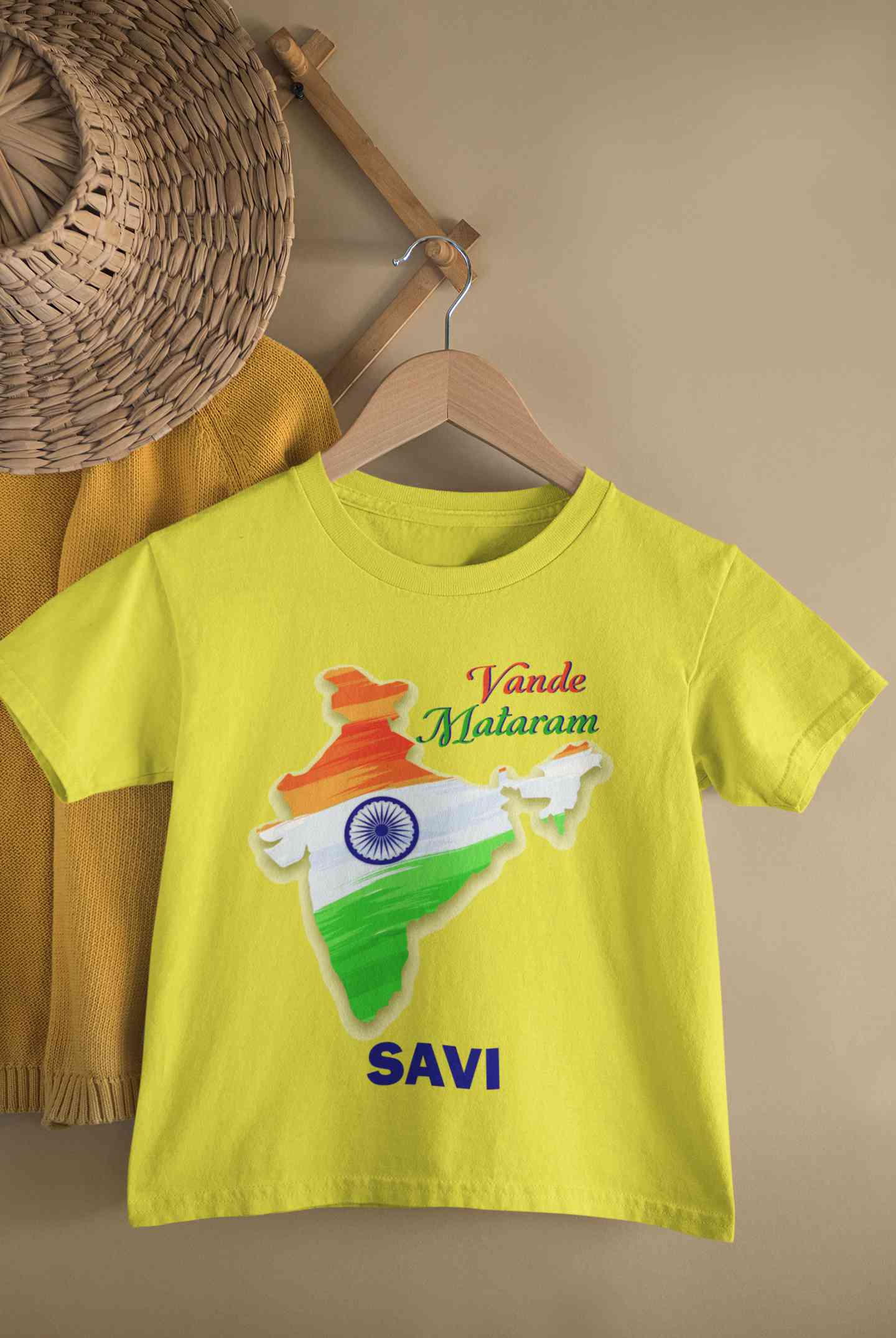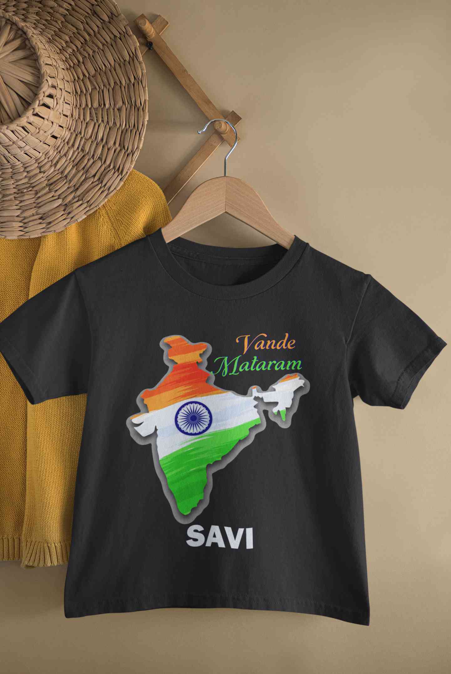Custom Name Vande Mataram Independence Day Half Sleeves T-Shirt For Girls -FashionRazor