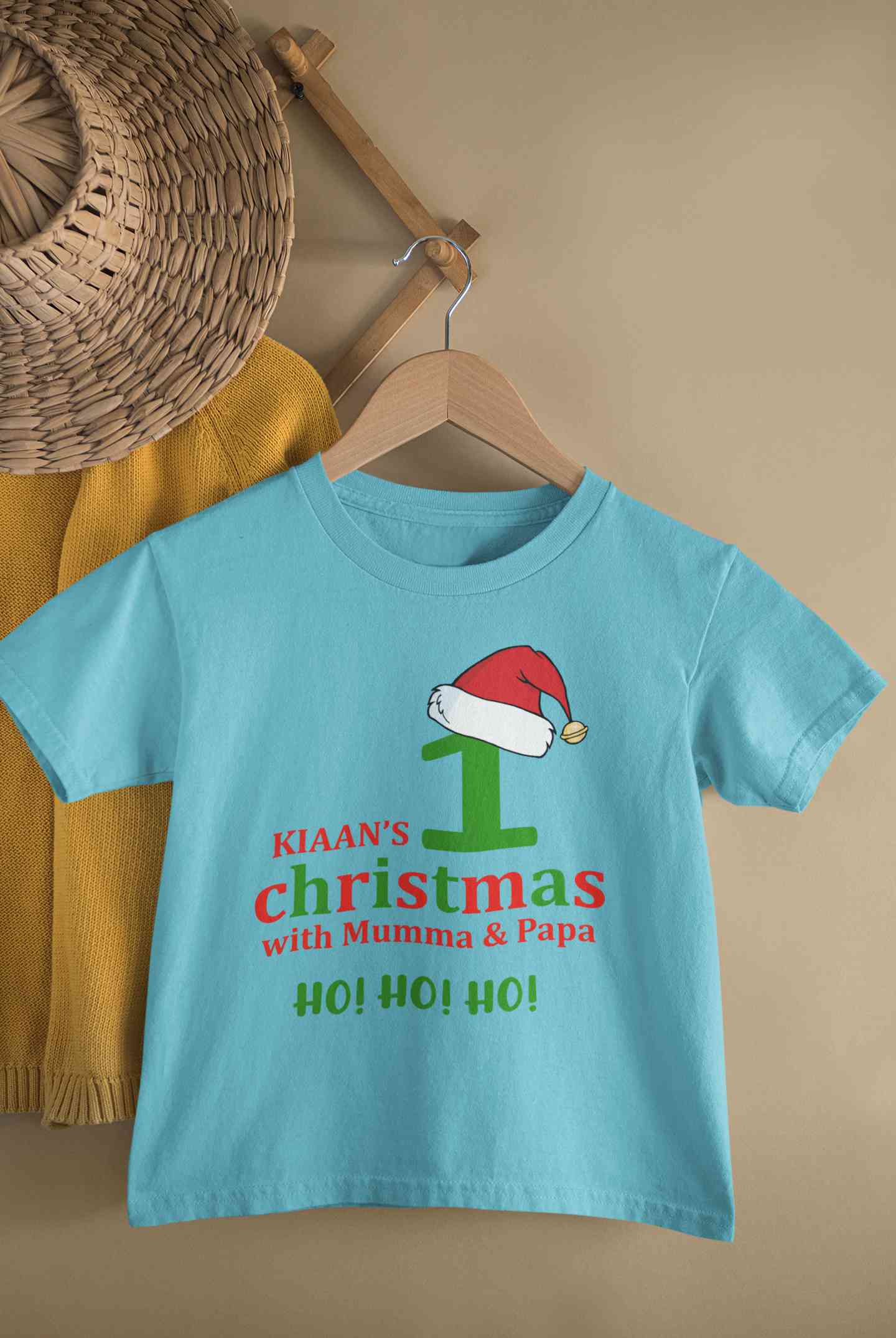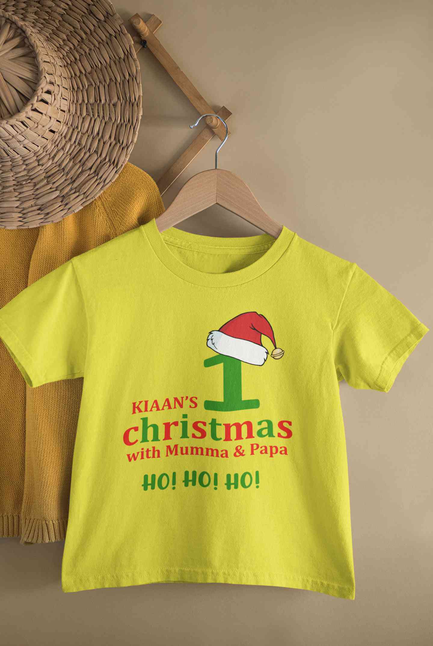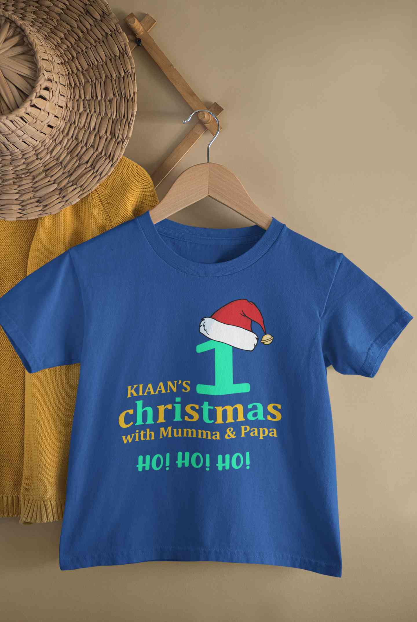 Buy Customized Name 1st Christmas With Mumma & Papa Half Sleeves T-Shirt for Boy-FashionRazor