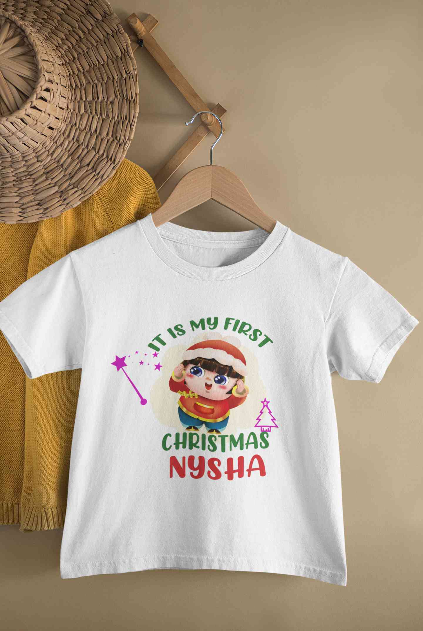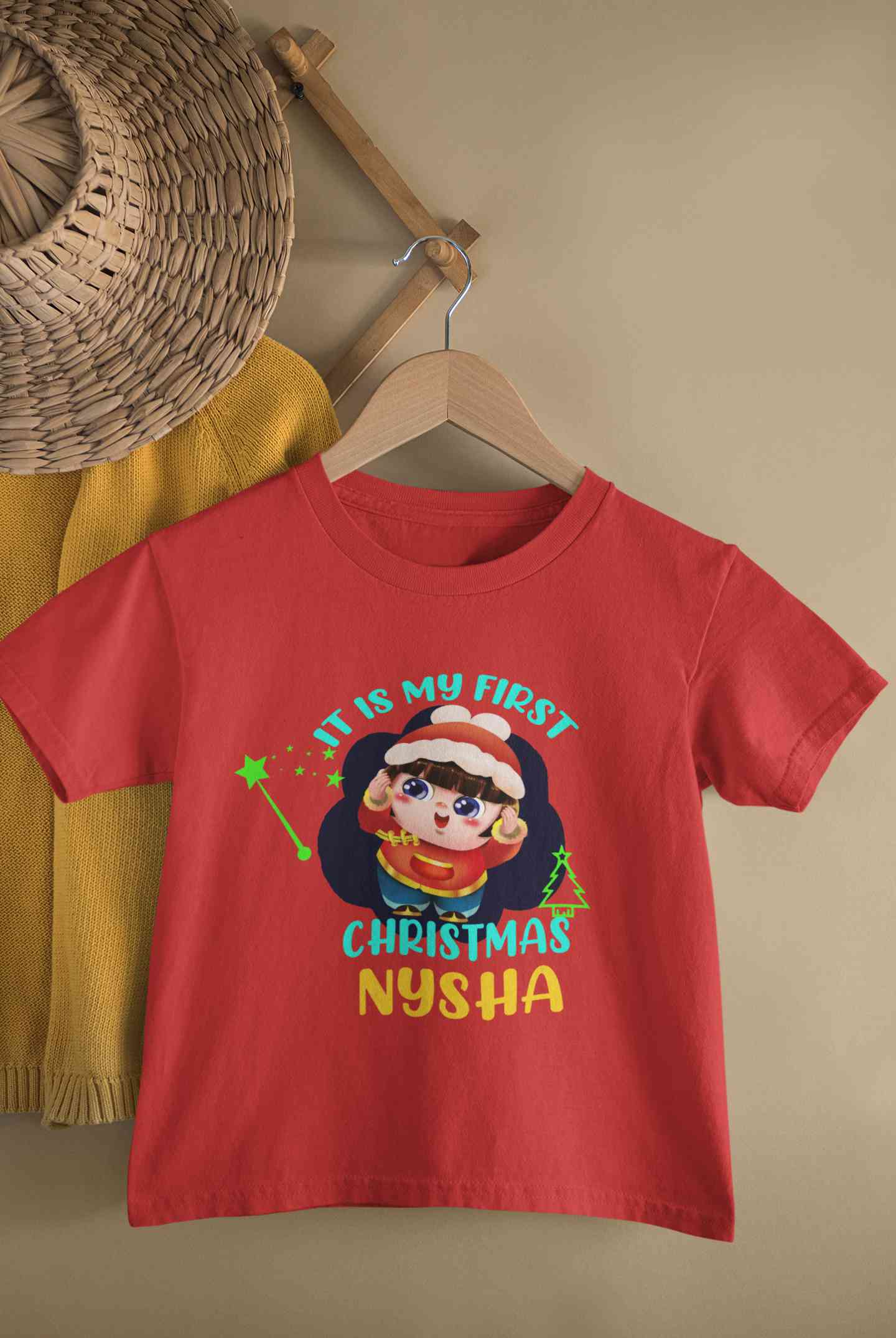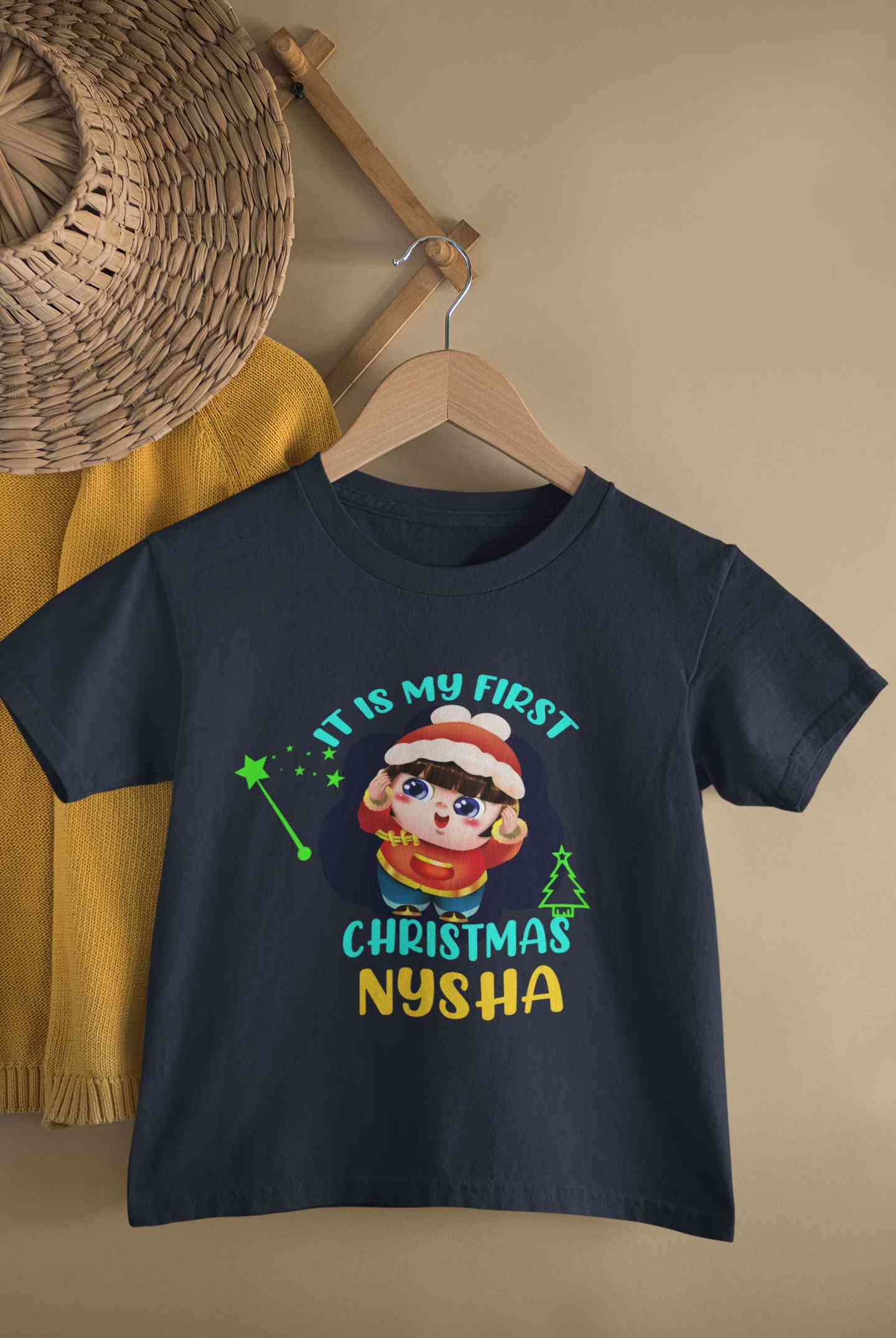 Customized Name It Is My First Christmas Half Sleeves T-Shirt For Girls -FashionRazor
