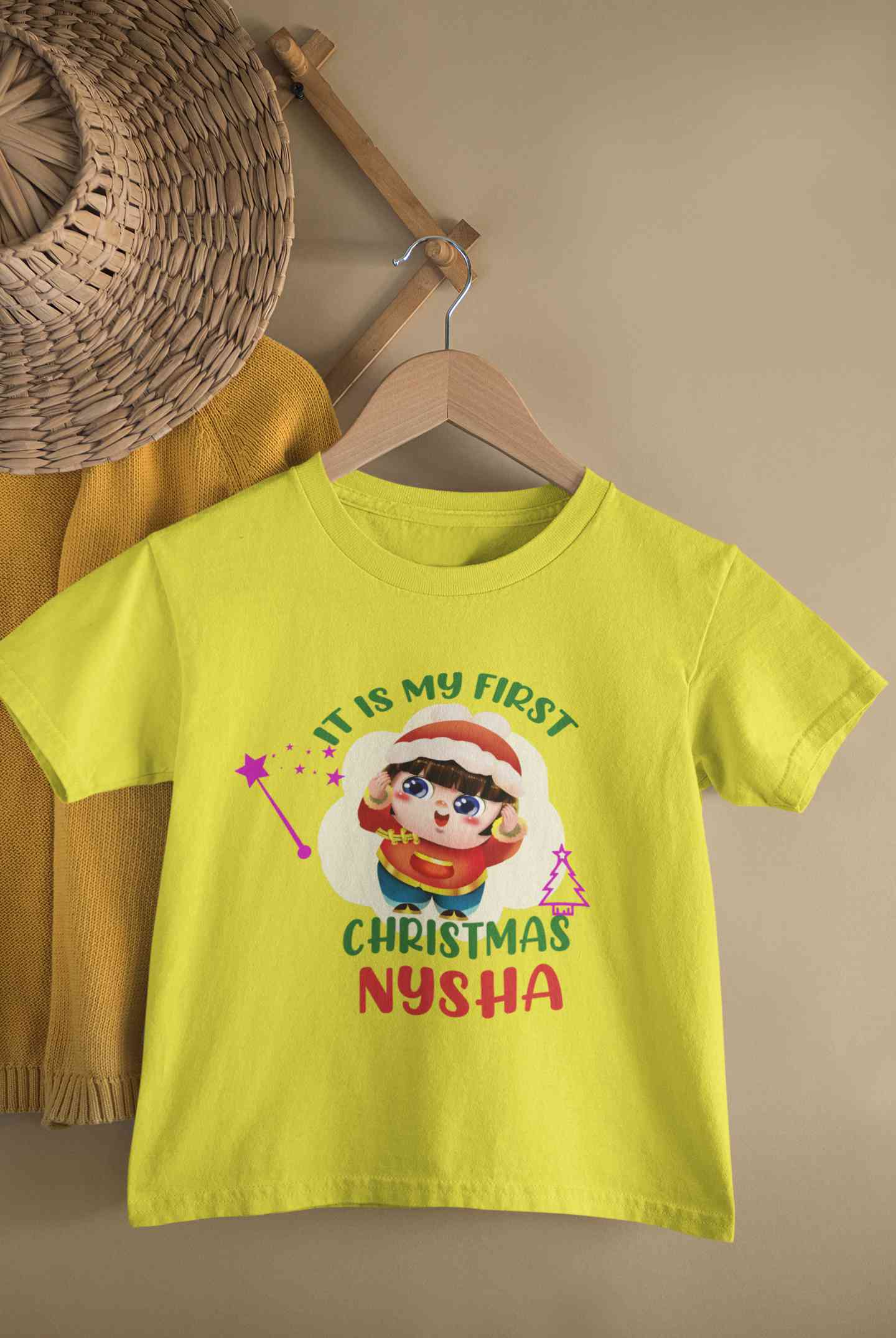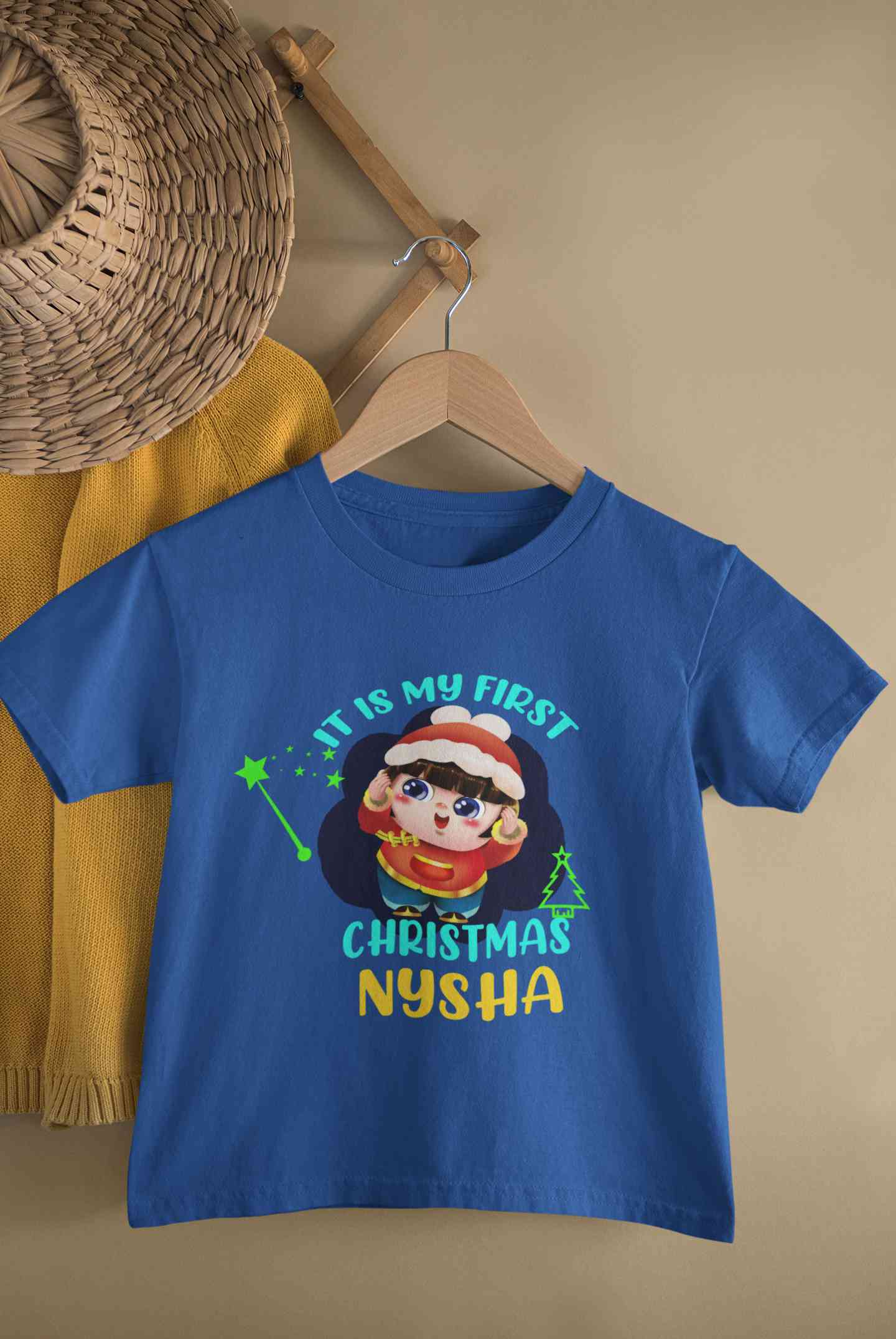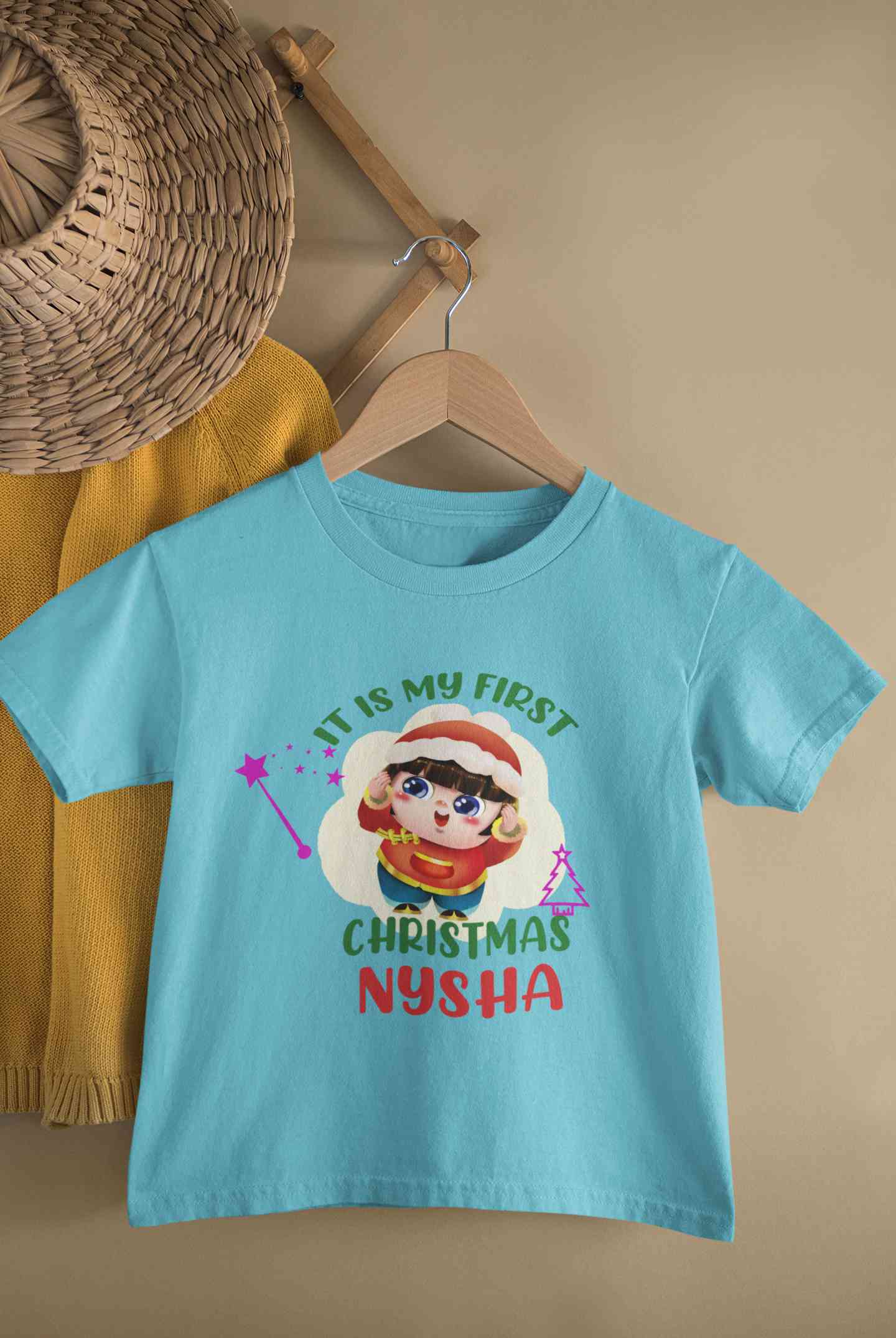 Customized Name It Is My First Christmas Half Sleeves T-Shirt For Girls -FashionRazor
