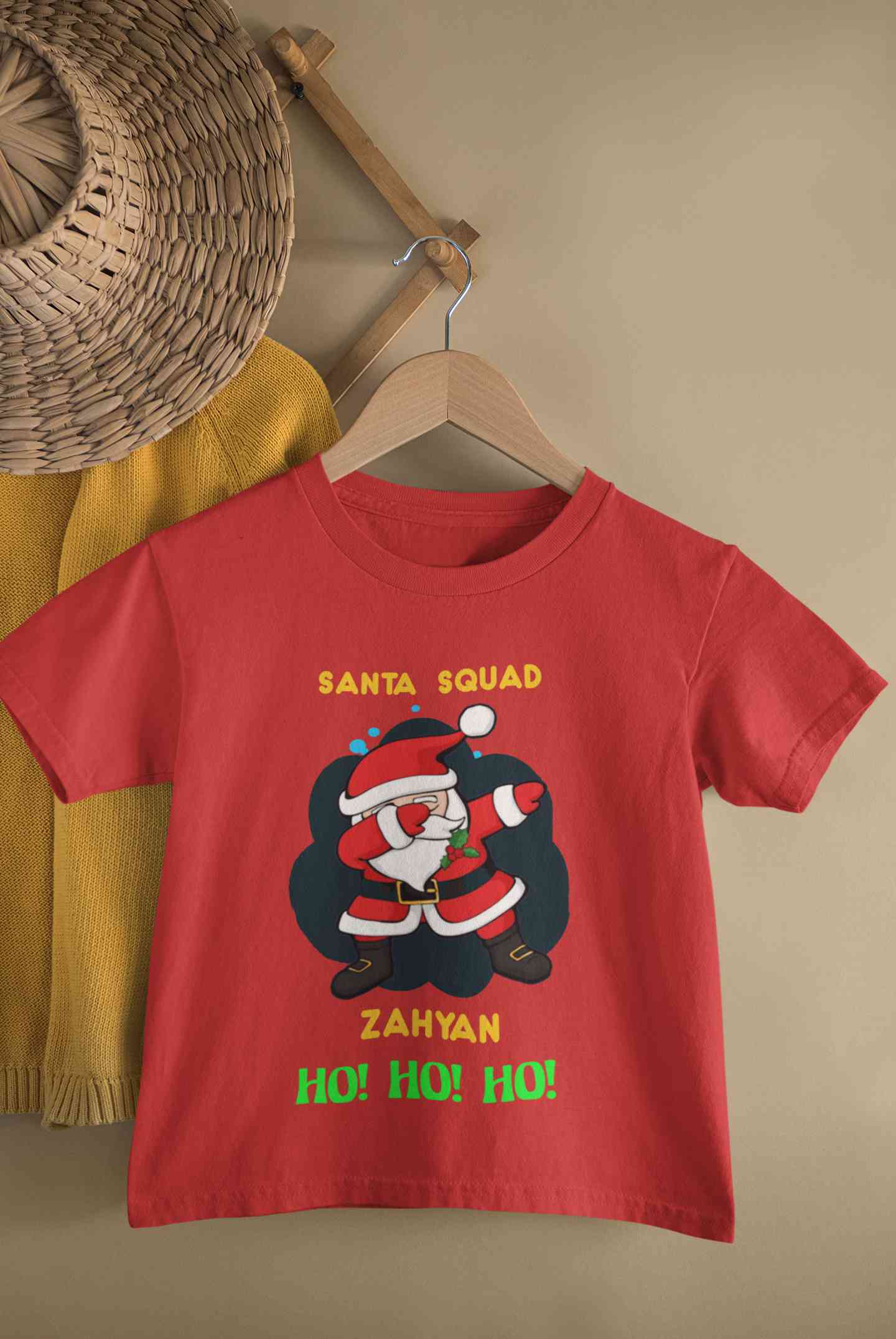 Buy Customized Name Santa Squad Ho Ho Ho Christmas Half Sleeves T-Shirt for Boy-FashionRazor