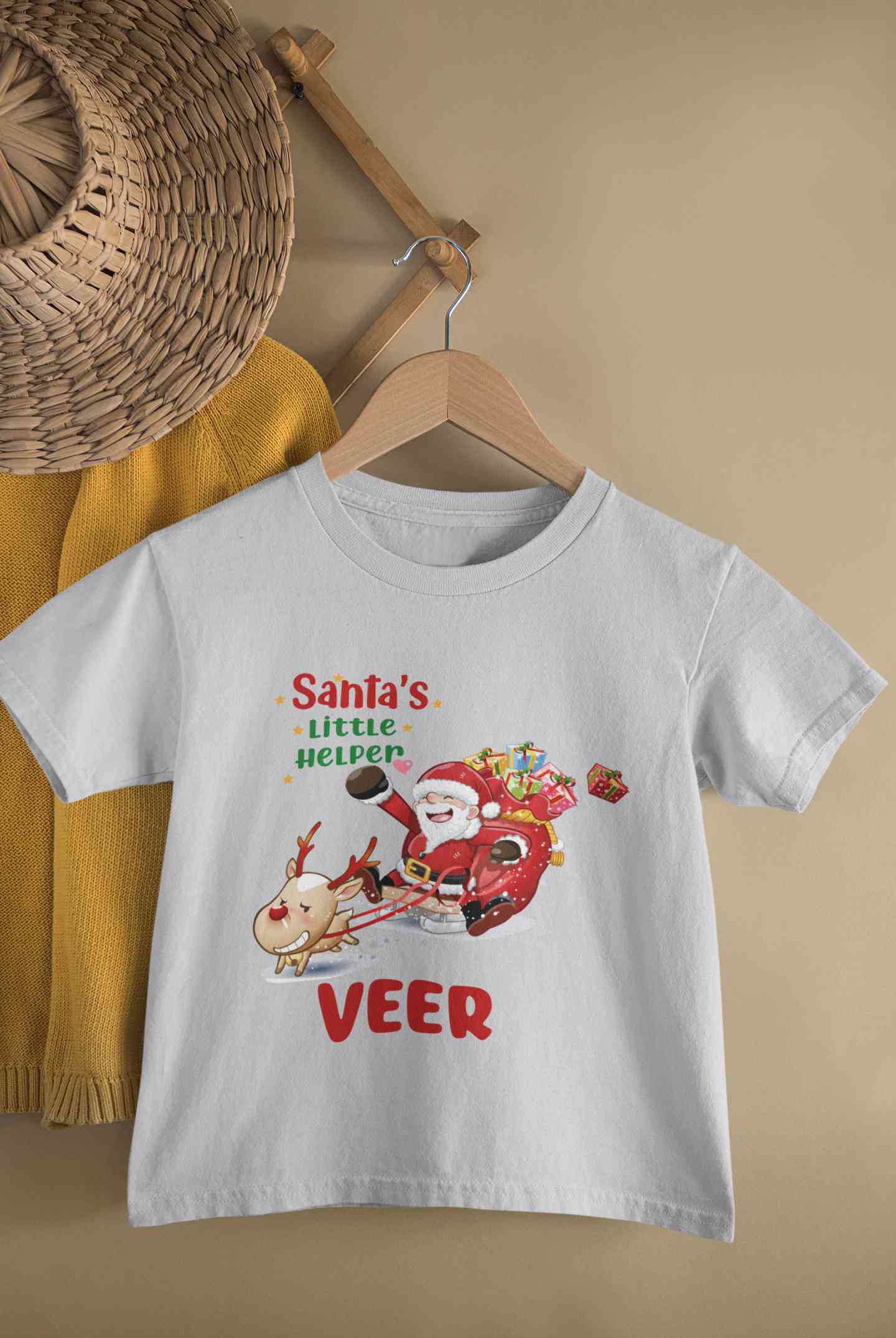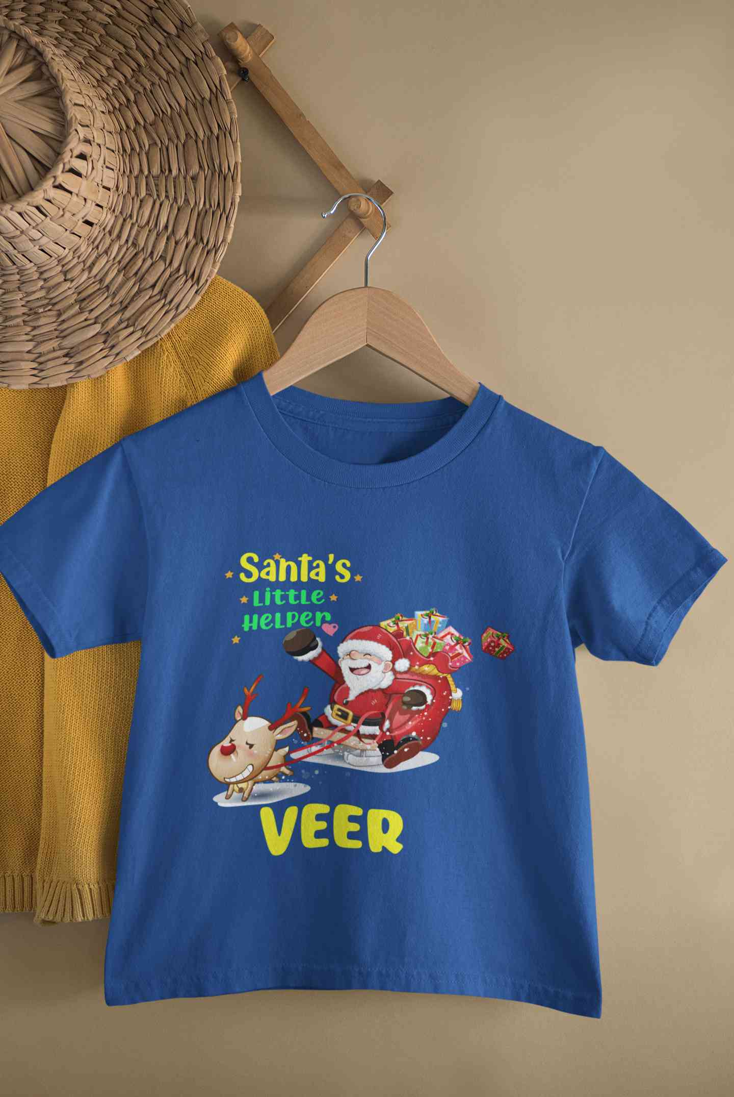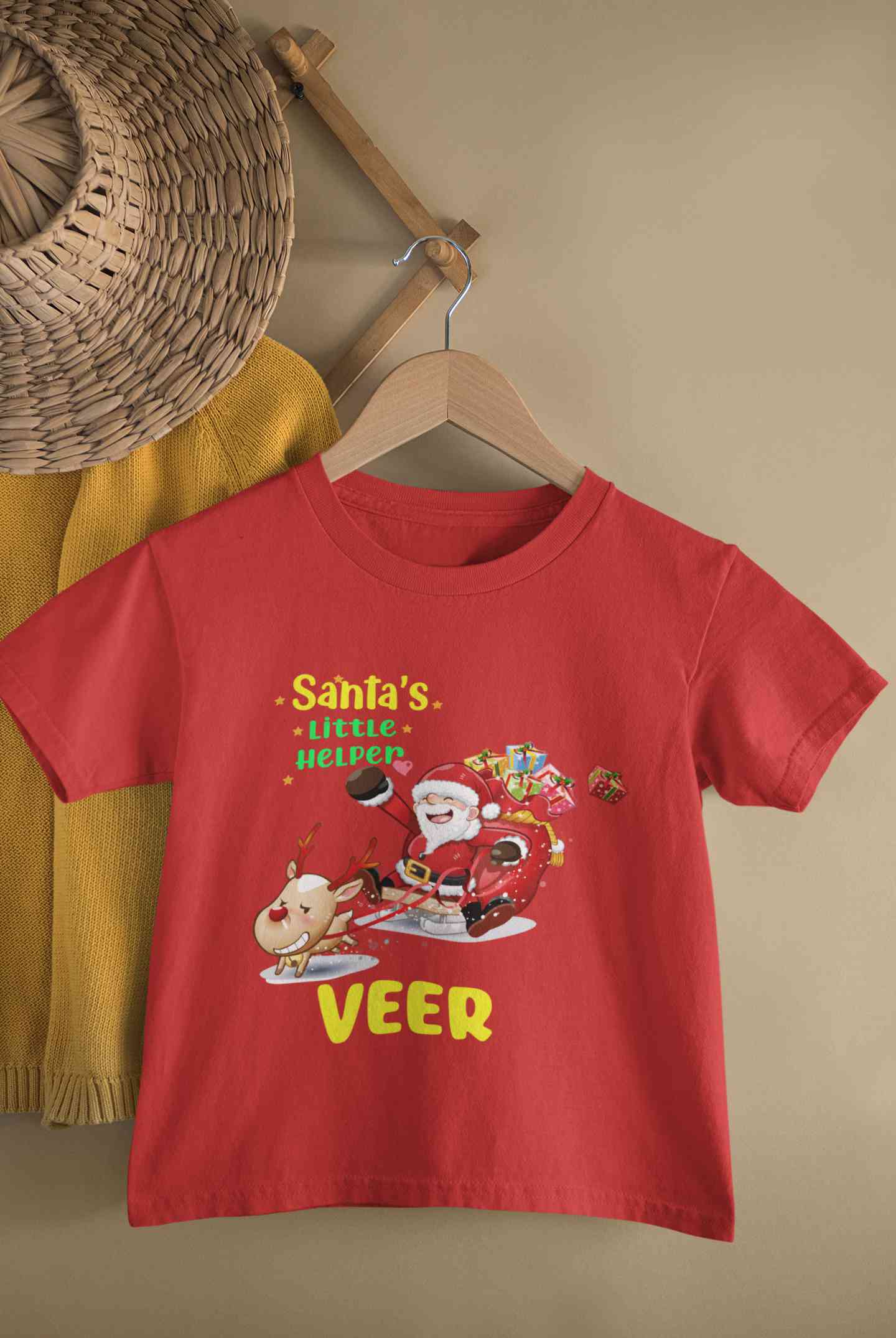 Buy Customized Name Santas Little Helper Christmas Half Sleeves T-Shirt for Boy-FashionRazor