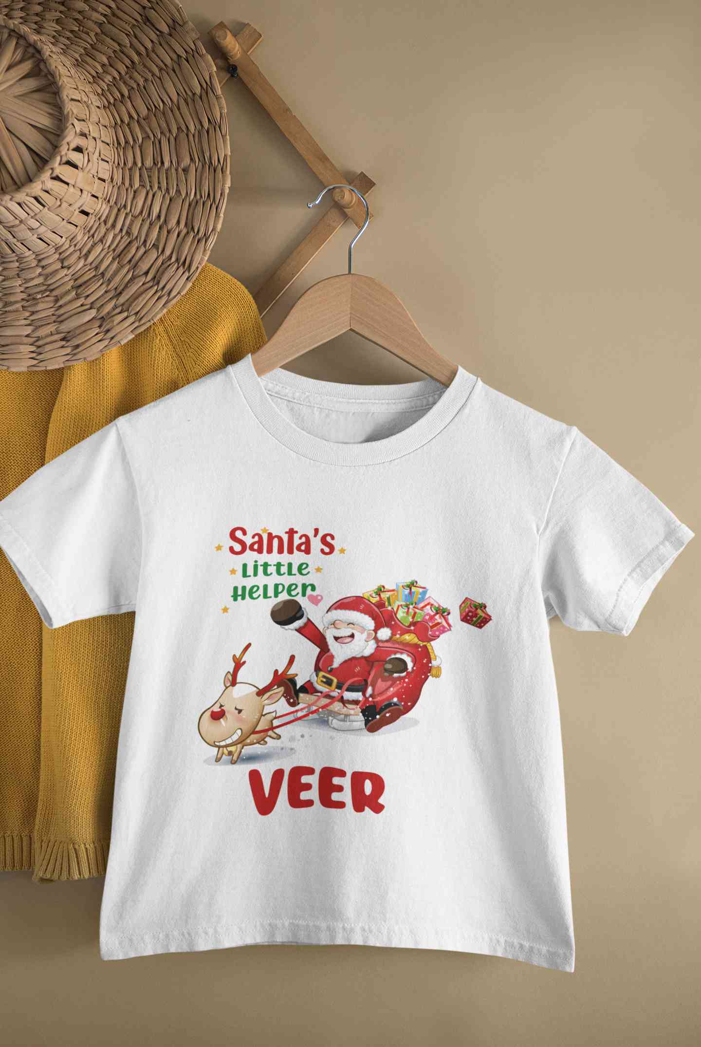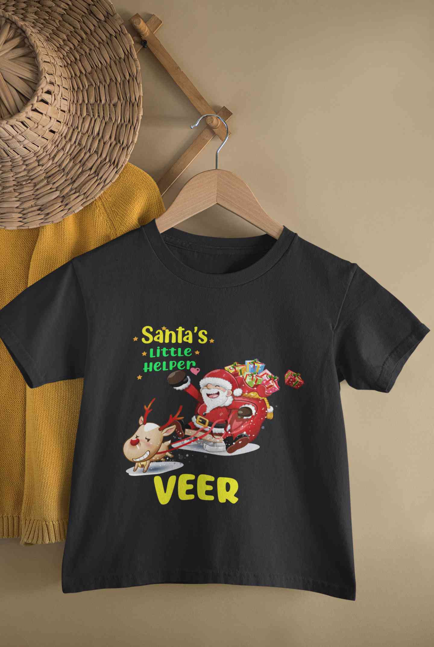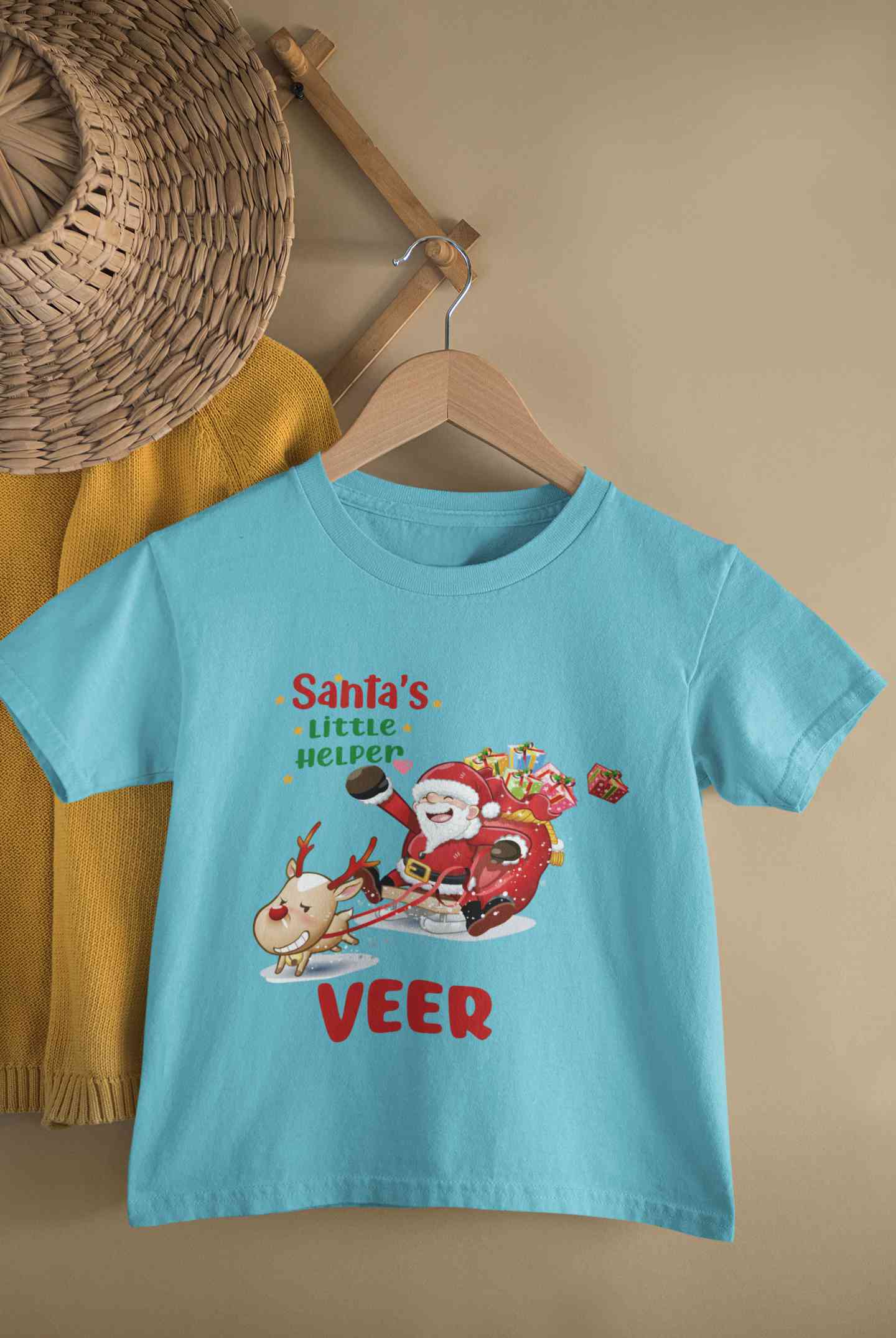 Buy Customized Name Santas Little Helper Christmas Half Sleeves T-Shirt for Boy-FashionRazor