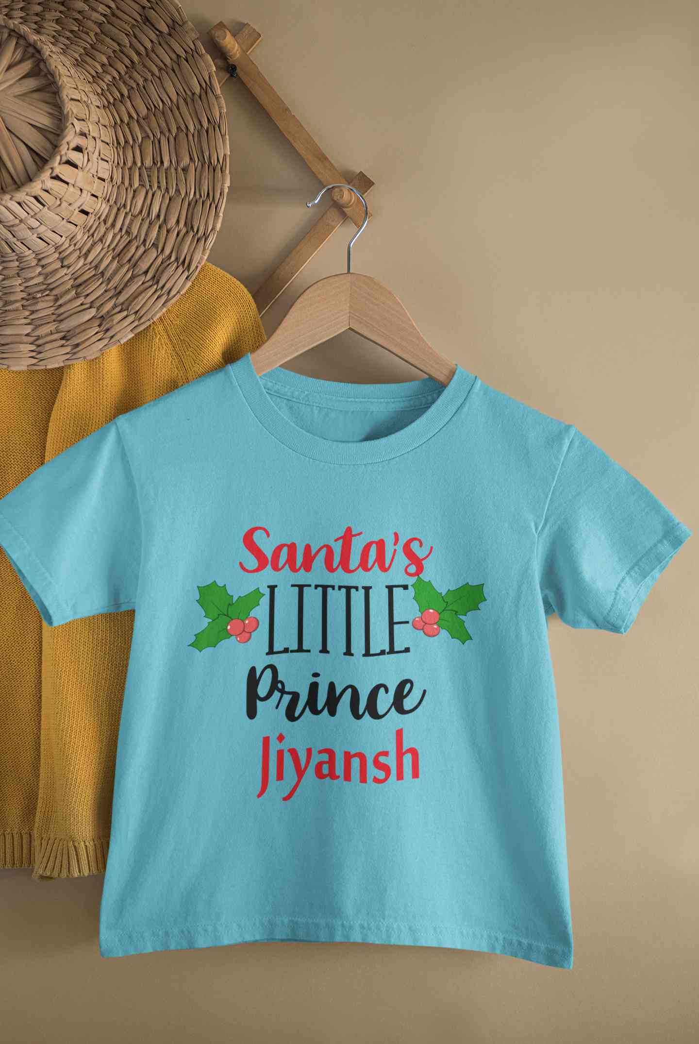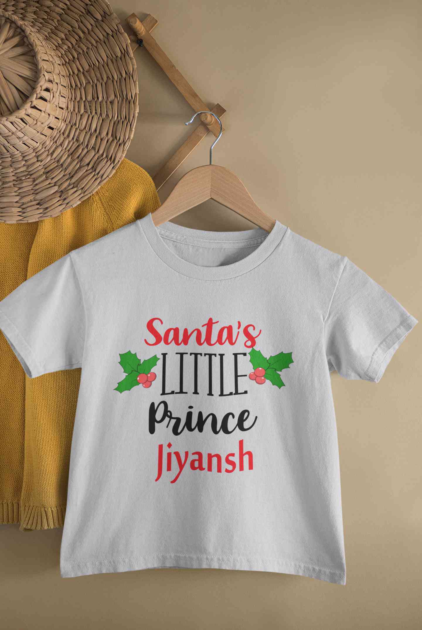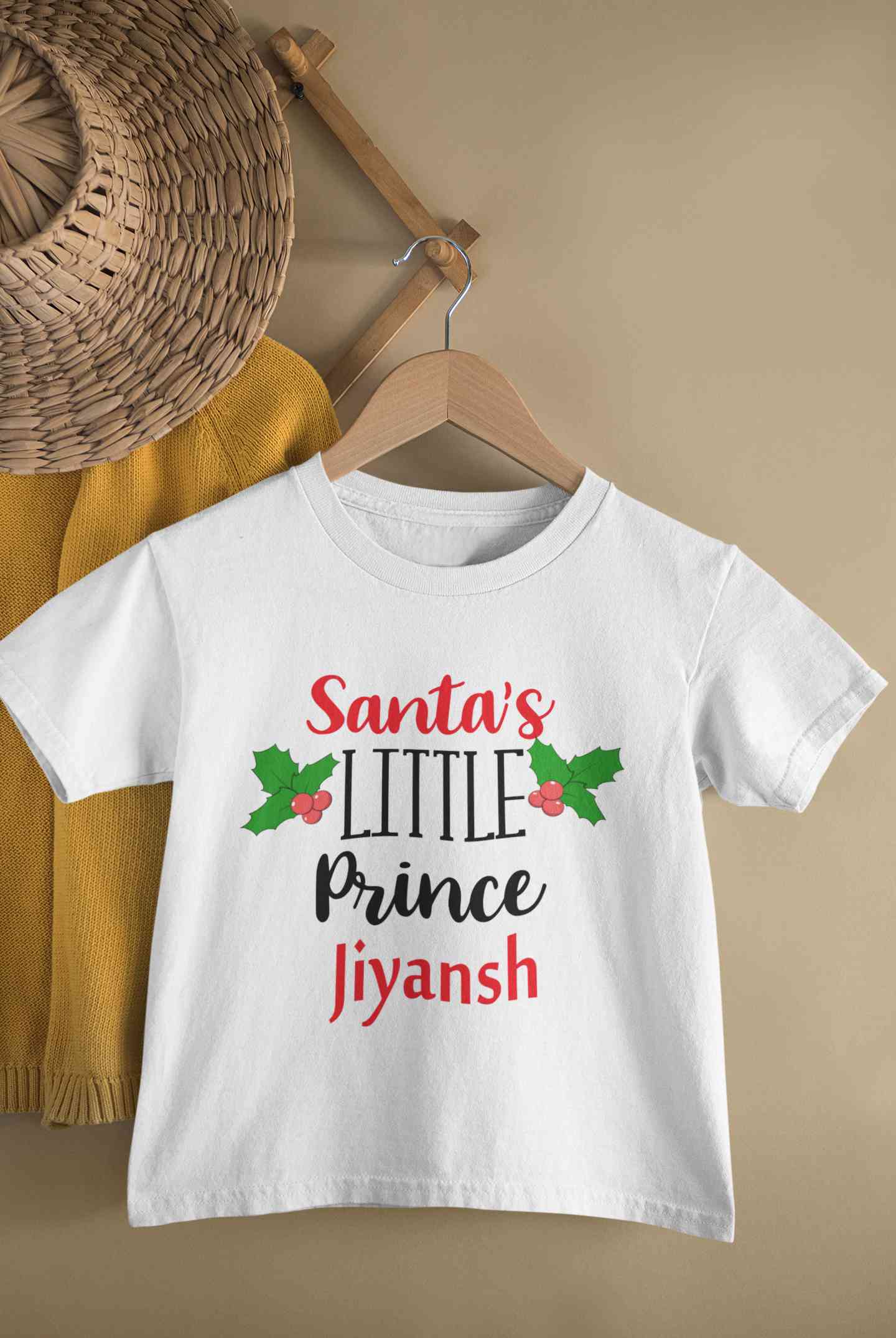 Buy Customized Name Santas Little Prince Christmas Half Sleeves T-Shirt for Boy-FashionRazor