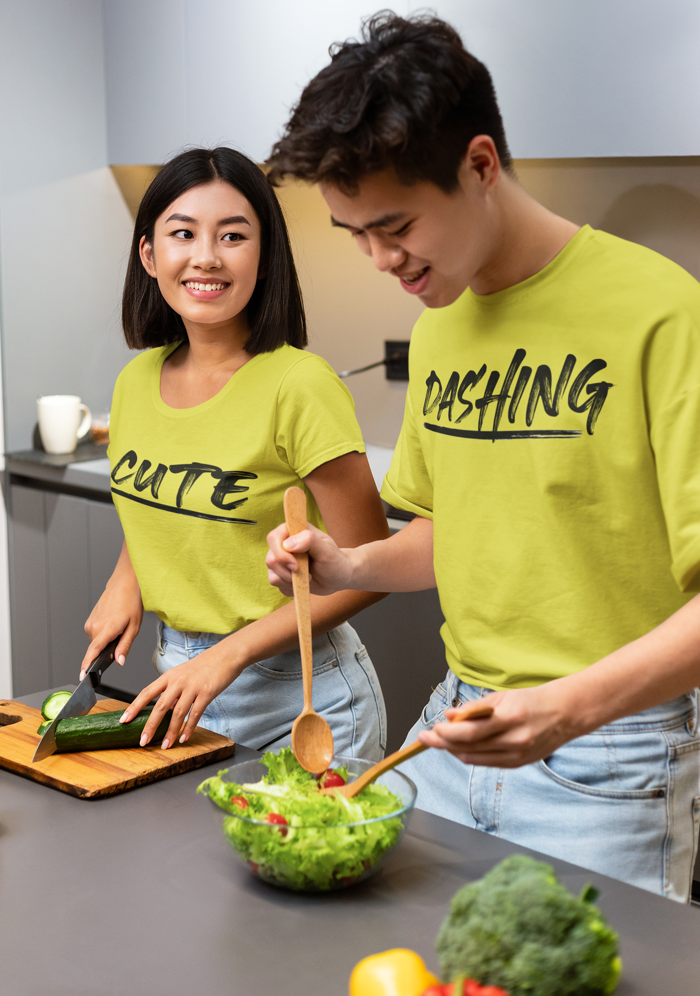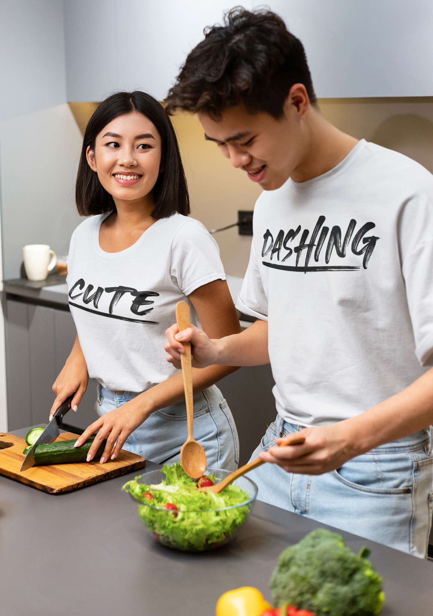 Cute Dashing Couple Half Sleeves T-Shirts -FashionRazor