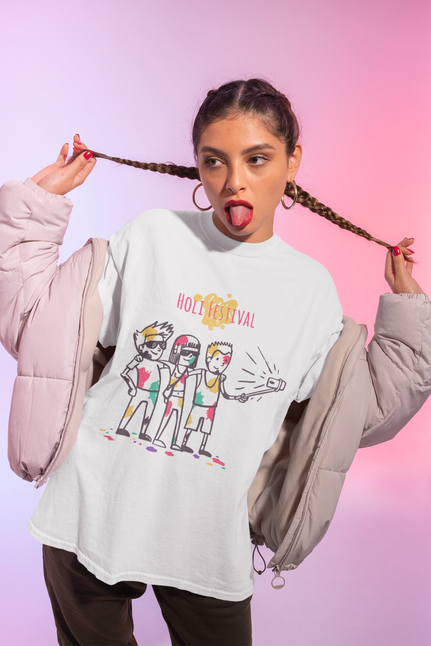 Friends Selfie Holi Women Half Sleeves T-shirt- FashionRazor