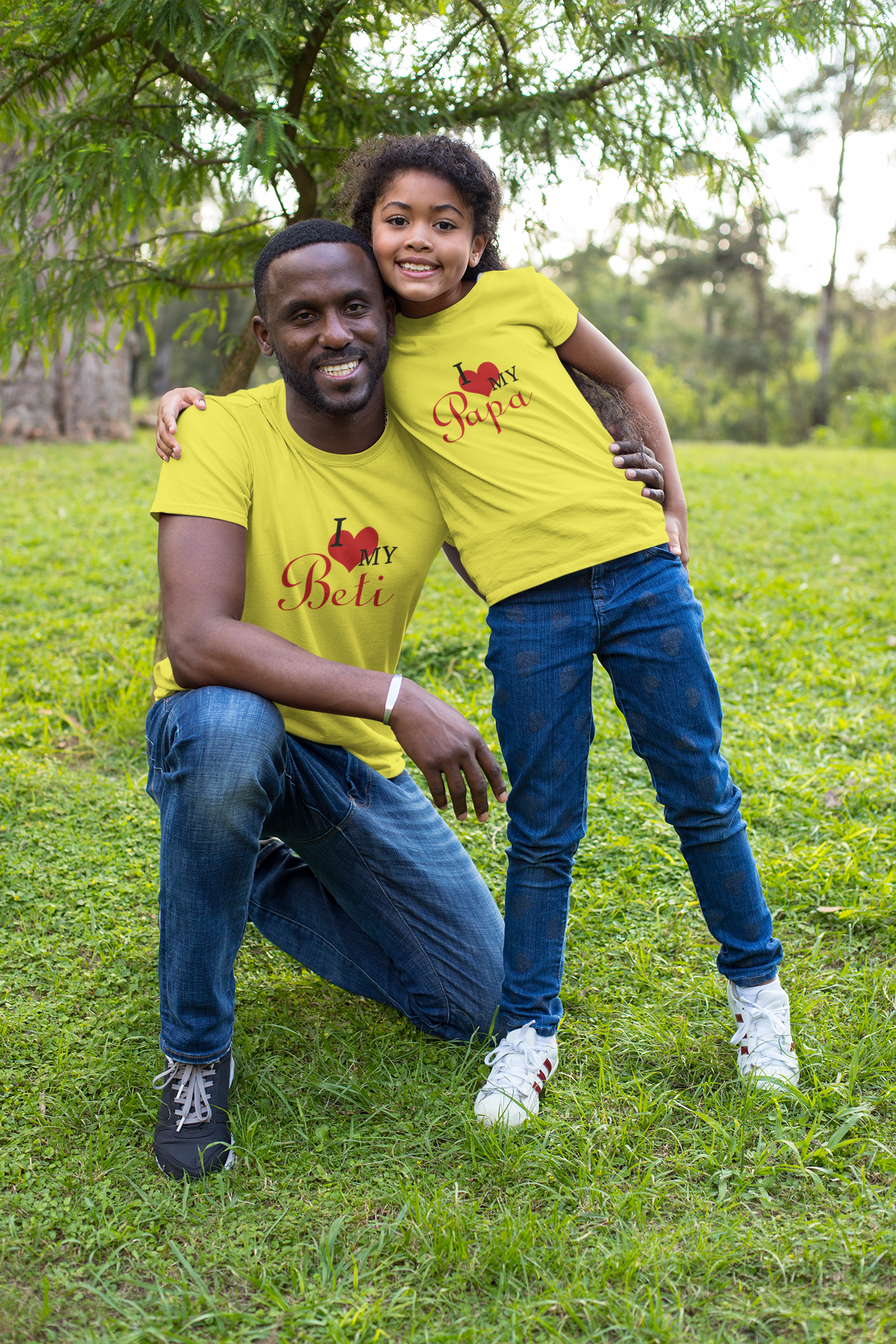I Love My Papa Father and Daughter Yellow Matching T-Shirt- FashionRazor