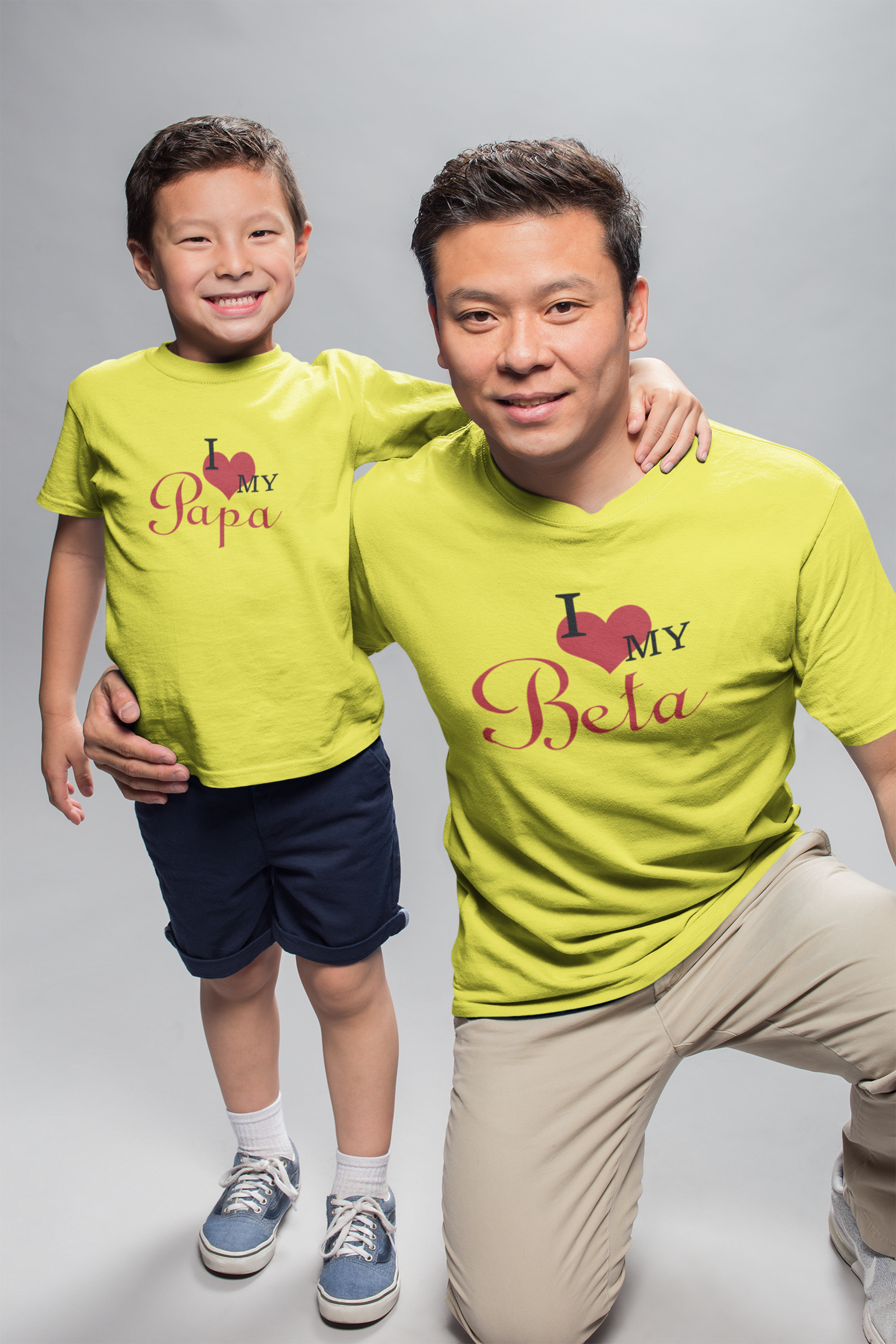 I Love My Papa Father and Son Yellow Matching T-Shirt- FashionRazor