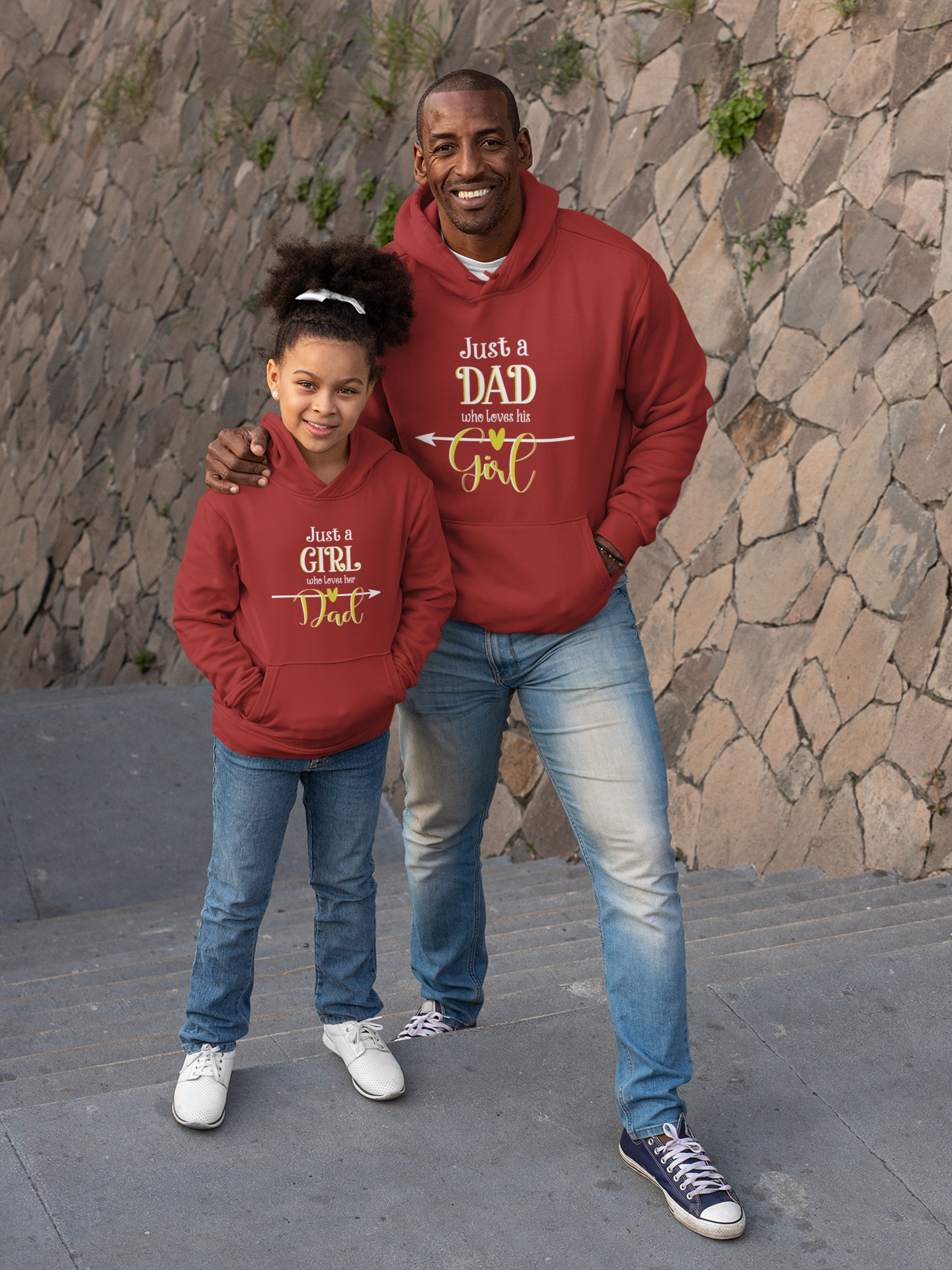 Just A Girl Who Loves His Dad Father and Daughter Red Matching Hoodies- FashionRazor