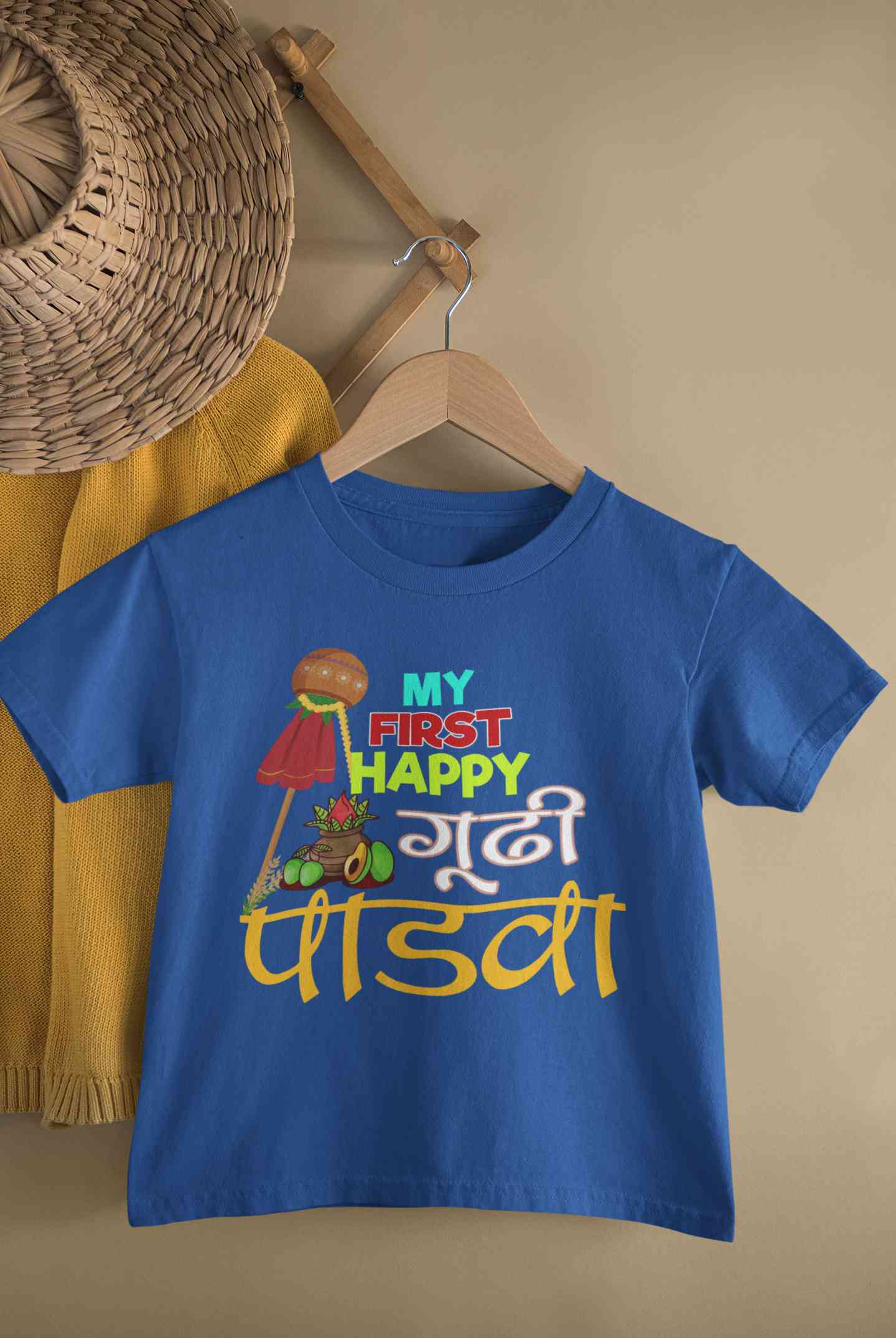 My First Gudipadwa Half Sleeves T-Shirt For Girls -FashionRazor