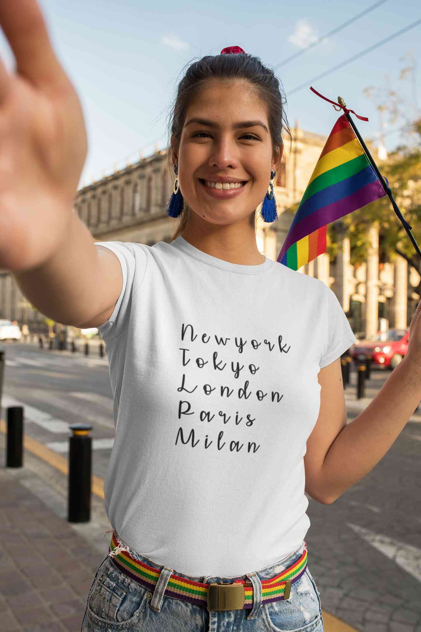 Newyork Tokyo London Paris Milan Women Half Sleeves T-shirt- FashionRazor