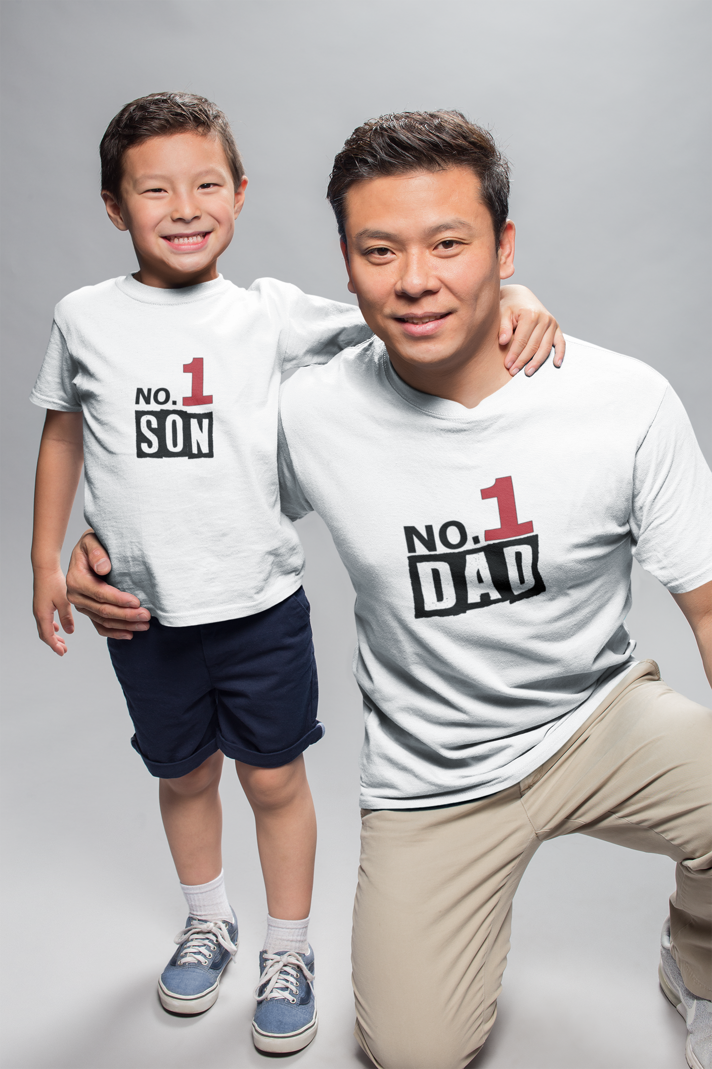 No 1 Dad Father and Son White Matching T-Shirt- FashionRazor