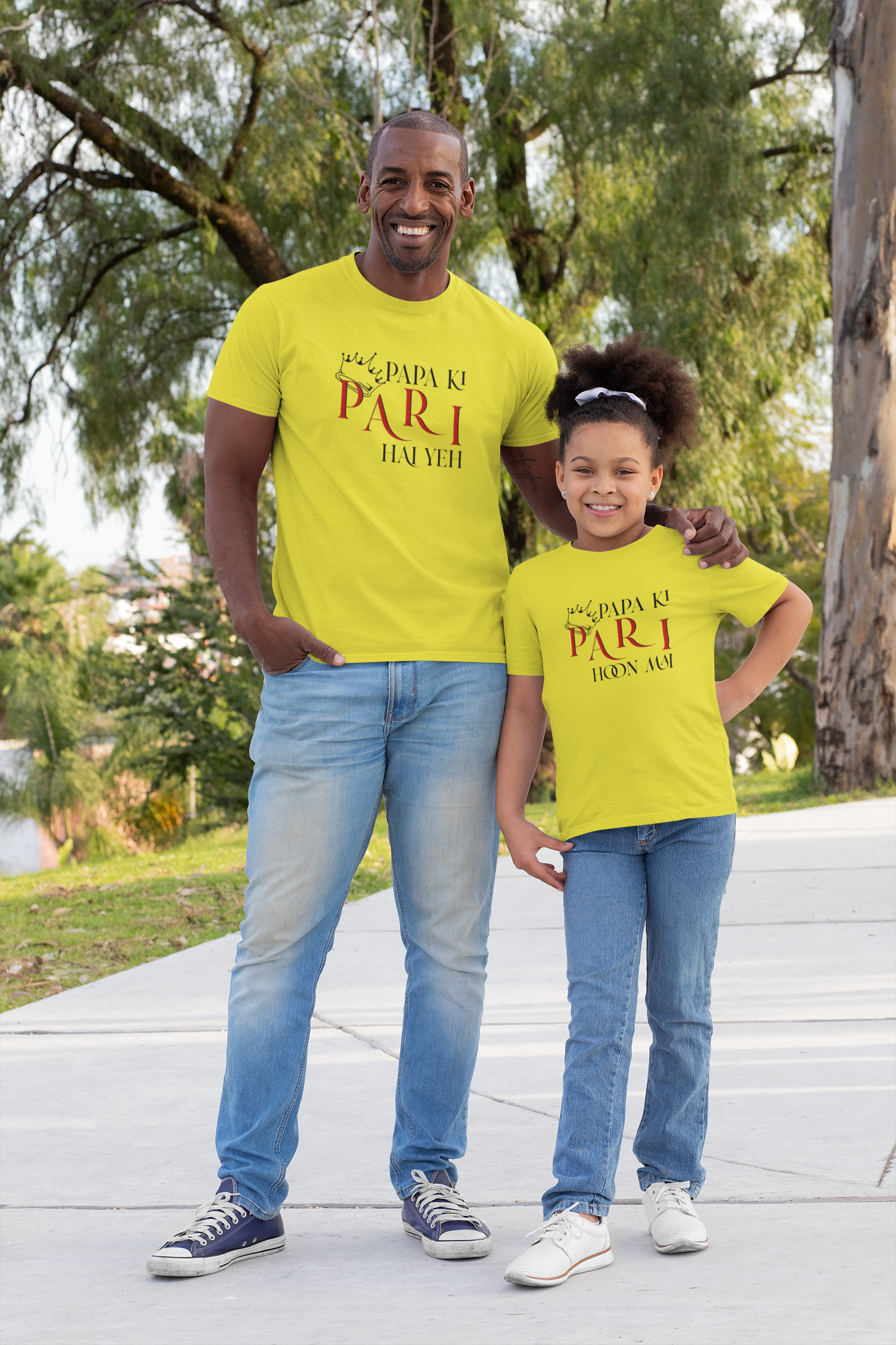 Papa Ki Pari Hu Mai Father and Daughter Yellow Matching T-Shirt- FashionRazor