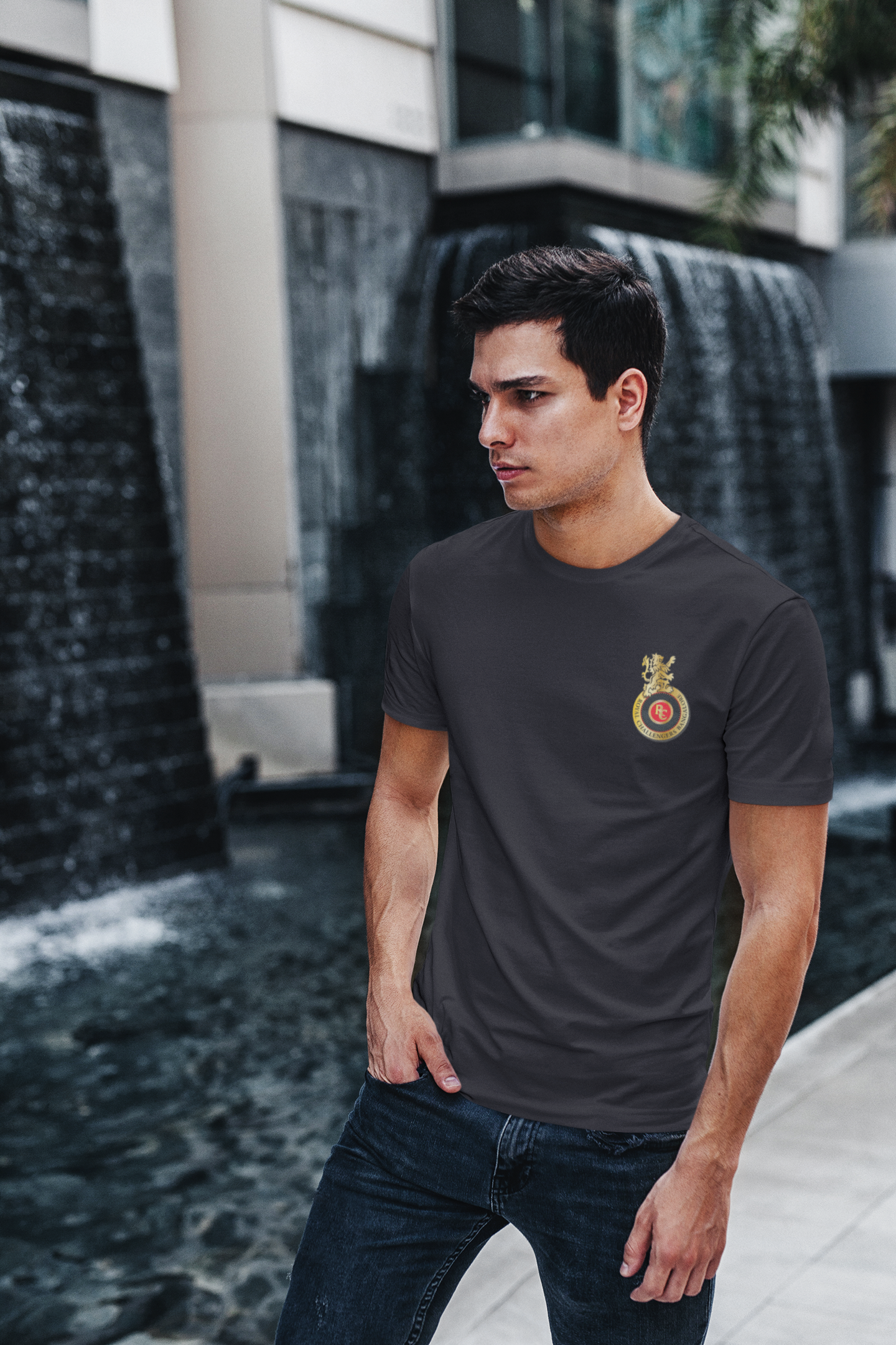 Rcb Logo Side Pocket Mens Half Sleeves T-shirt- FashionRazor